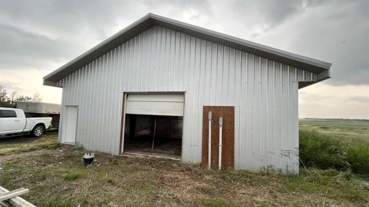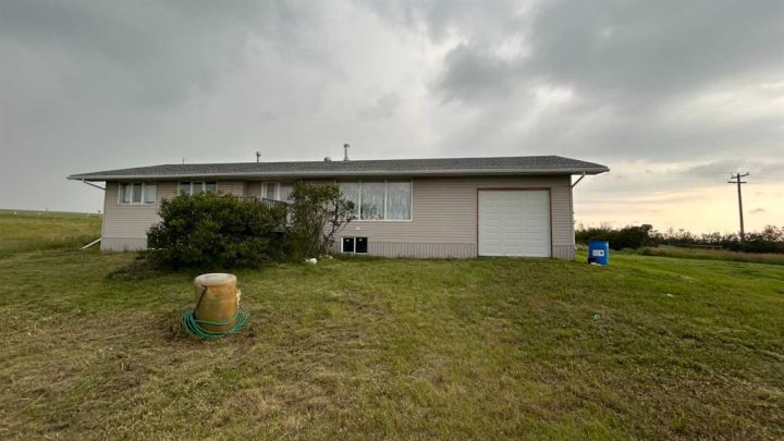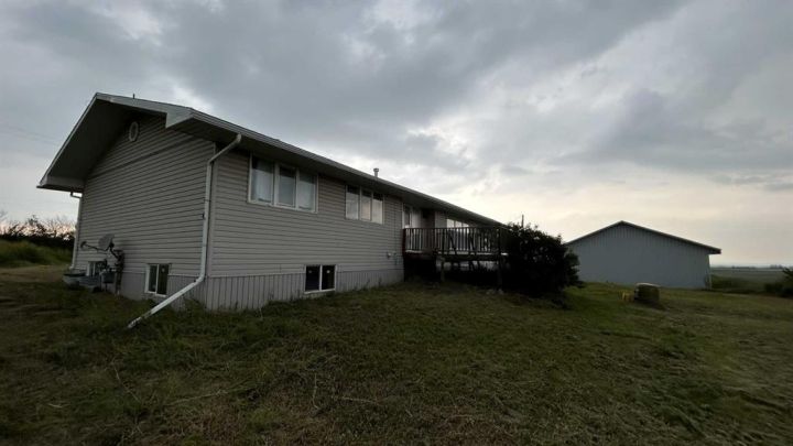 Here’s your chance to own a beautiful 4-acre parcel in the countryside—just under 55 minutes from Calgary! Nestled beside a scenic coulee with a small pond, this spacious 1,500+ sq. ft. bungalow offers the perfect blend of rural charm and practical potential. The home features three bedrooms and 1.5 bathrooms, with a framed basement ready for development—just waiting for your personal touch. Finish it off and complete a few remaining renovations on the main floor to instantly add value and equity. Additional highlights include: Two insulated barns/workshops 36mX18m– both built in 2022 Attached garage/workshop Two decks, including a massive 24’ x 14’ west-facing deck for ultimate privacy New hot water tank Highly insulated foundation Abundant electrical power Well + municipal water for reliable supply Second driveway access – ideal for future development, additional buildings, or a large workshop This home offers incredible potential for a renovation project, flip, or a dream home with built-in equity. With this much land and infrastructure at such an affordable price, it's a rare find in today’s market.
