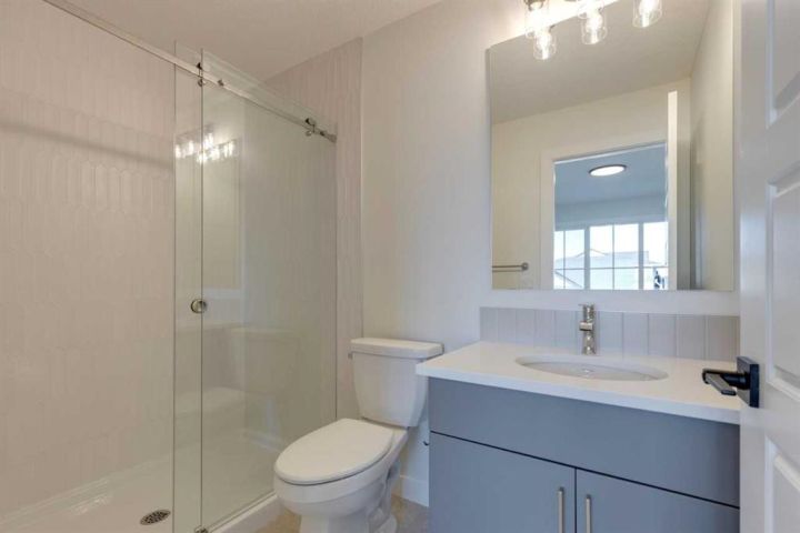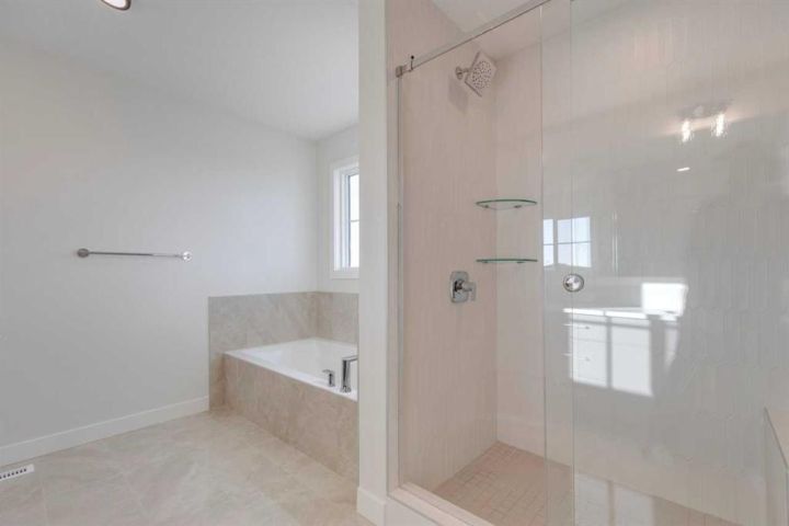 The Pierce 2 offers a refined blend of function, style, and sustainability. This thoughtfully crafted home features professionally curated, on-trend interior selections that bring a modern and cohesive aesthetic throughout. The home embraces an open-concept design that enhances the sense of space and flow, with expansive living areas that are ideal for both everyday living and entertaining. Whether you're hosting guests or enjoying a quiet night in, the seamless layout offers flexibility and comfort throughout. At the heart of the home is a chef-inspired kitchen designed to stir your culinary creativity. Showcasing elegant waterfall quartz countertops, bronze taps, and sleek finishes, the space is both functional and visually striking. A spice kitchen provides added convenience and flexibility for everyday cooking or entertaining, while thoughtful details like upgraded drawer handles complete the elevated design. Upstairs, you'll find four well-appointed bedrooms, including an expansive and truly show-stopping primary bedroom. This serene retreat features a luxurious ensuite with a long soaker tub, a large walk-in shower lined with elongated hexagon tile, and refined finishes—offering the perfect blend of comfort and sophistication. Certified Built Green, the home includes energy-efficient upgrades such as triple-pane windows, a high-efficiency furnace, a solar chase for future solar panel installation, and blower door testing that may qualify for up to 25% mortgage insurance savings. A rough-in for an electric vehicle charger is also included, supporting future-ready living. Smart home features include a programmable thermostat, Ring video doorbell, smart front door lock, motion-activated and smart switches, all easily managed through an integrated Amazon Alexa touchscreen hub. Photos are representative.