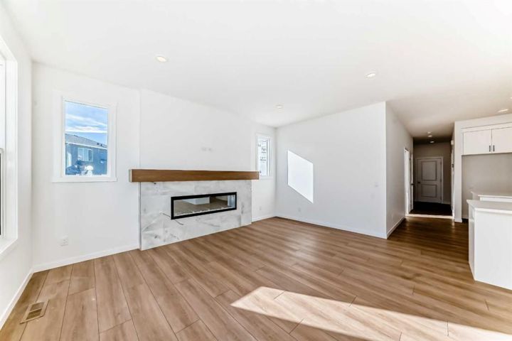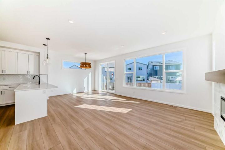 A Daytona Homes classic on a rare pie shaped lot This is the kind of family home Daytona is known for. Smart flow. Clean lines. Bright, livable spaces. Set on a quiet bay with a generous pie shaped yard, 122 Walgrove Bay offers over 2200 sq ft of thoughtfully planned living that feels upscale and easy all at once. Step inside to an open main level with a welcoming great room anchored by a sleek electric fireplace and a media ready feature wall. The kitchen brings a large working island, plenty of storage, and built in wall oven and microwave, all opening to a sunny dining area that looks out to the backyard. A front flex room gives you options for an office, study space, playroom, or guest zone. There is also a convenient main floor bath and a practical mud room off the garage to keep everyday life organized. Upstairs, a spacious bonus room sets the tone for movie nights and hangouts. The private primary retreat features a walk in closet and a calm ensuite with a separate shower and a freestanding soaking tub. Two additional bedrooms share a full bathroom, and the laundry is right where you want it for quick loads and less hauling. Outside, the pie shaped lot means extra elbow room for a future deck or patio, a play space, or garden beds. The double attached garage completes the package. Daytona Homes pairs design forward floor plans with polished finishes, energy smart construction, and attentive after care. Expect practical upgrades where they matter, a home that lives bigger than the numbers suggest, and the confidence that comes with a quality builder and new home warranty. Why Walden? Tree lined streets, parks and pathways, everyday essentials close by, and quick access to major routes. Walden delivers a calm, connected lifestyle in Calgary’s southeast.