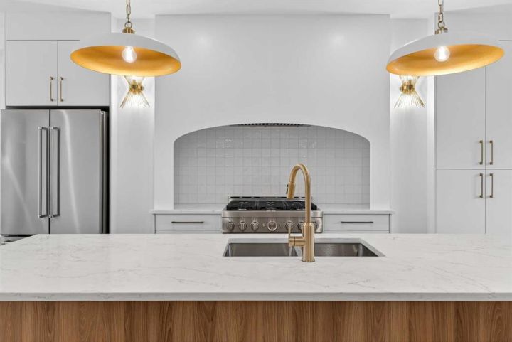 Ideally located in the wonderful community of North Glenmore Park, this 3 +1 bedroom custom built infill is beautifully appointed. The front door opens to a generous entrance way opposite a lovely dining room overlooking the fully landscaped front yard. The open concept floor plan flows smoothly from the dining room to the spacious kitchen with custom hoodfan and large island, perfect for entertaining. It then moves to the beautiful living room overlooking the fully fenced in and manicured backyard and porch. The adunance of natural light highlights the engineered oak hardwood floors, quartz counters and lovely light fixtures & plentiful cabinetry. The upper floor master bedroom is a true oasis with a lovely ensuite and spacious walk in closet. The other two bedrooms are generously sized with the main bath easily accessable to both. Upper laundry and nook finish off the upper level nicely. The basement is fully finished with a family room and wet bar, bedroom, bathroom, nook and storage. The oversized garage, fully fenced in & landscaped yard with underground sprinkler system finishes this property off very nicely. Hard to beat this amazing location which is close to a plethora of schools, bike pathways, public pool, running track, transit, hockey & curling arenas and be 7 min from DT. Book your appointment today!