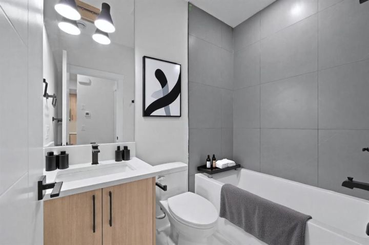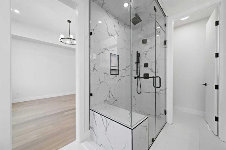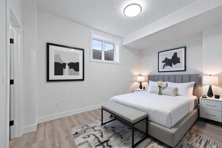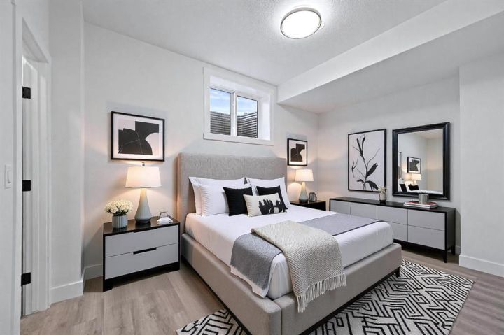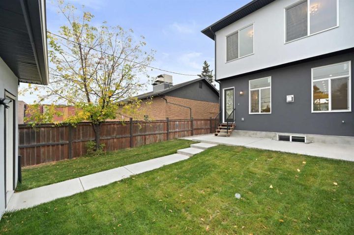 I'm excited to present this brand-new, move-in ready luxury infill with double garage and situated on an oversized 27' wide lot located on a convenient street in Bowness. This property boasts elevated design and incredible functionality, featuring a legal 2-bedroom basement suite and a sunny south exposed front with expansive valley views from the upper floor. Every detail was thoughtfully selected, from the wide-plank modern floors to the curated lighting and premium finishes throughout. Step inside to a bright, open-concept main floor with 10' ceilings, oversized windows and neutral tones that create an airy, inviting vibe. The large, well-lit dining room is perfect for bigger families and/or hosting guests and shows off a vibrant and colourful feature wall, which flows seamlessly into a designer kitchen featuring modern warm toned cabinetry, paired with beautifully coloured glass backsplash, quartz countertops, matte black hardware, a huge walk-in pantry with built-in shelving, and a perfect-sized center island with bar seating with more natural wood tones, bringing everything together beautifully. The upgraded stainless steel appliance package includes an oversized sub zero fridge with french doors, a gas cooktop with stylish hood fan, and a thoughtfully placed wall oven and microwave. The rear living room is wide and spacious featuring additional large windows plus a cozy gas fireplace with stone surround and custom mantle, and which leads you out to the large backyard, which features an oversized concrete pad, perfect for end of the day BBQ's and lounging. An enclosed mudroom with a large closet area and a sleek powder room that comes with a raised matte black sink complete the mainfloor. Upstairs contains the three large bedrooms, all with trayed ceilings, including the primary bedroom which is a true retreat that features a large walk-in closet with several custom built-ins plus a hotel like ensuite. Enjoy heated tile flooring, dual sinks, quartz countertops, matching tile surrounds, plus a free standing soaker tub and an oversized glass shower with rain shower head and roughed-in for steam. The upper laundry room comes with a sink, quartz countertops, additional wood toned cabinetry, and is situated beside the stylish full bathroom which features a tiled tub/shower combo. Downstairs features the thoughtfully designed legal 2 bedroom suite and features 9' ceilings, luxury vinyl plank flooring, wonderfully warm toned cabinetry, stainless steel appliances and lots of pot lighting. A full bathroom with elegant tile is also featured plus a dedicated laundry room, separate side entrance and storage, making this perfect for rental income or multigenerational families. Additional features include roughed in A/C, built-in speakers and each room wired for Cat5 data. This is truly exceptional value! Call your favorite agent today to view the excellent inner city new build.