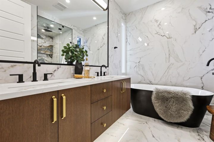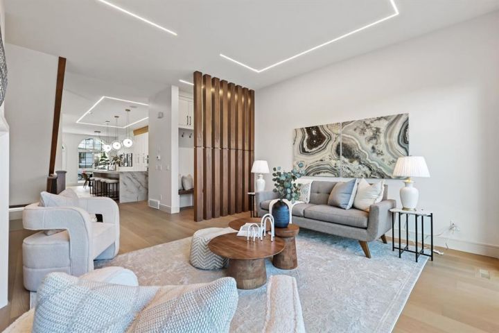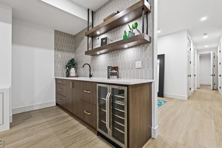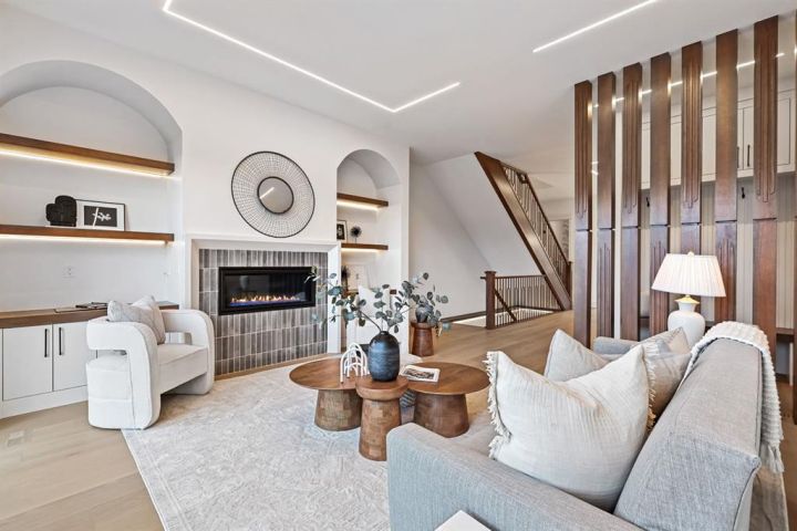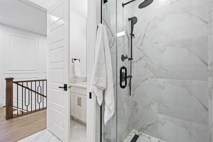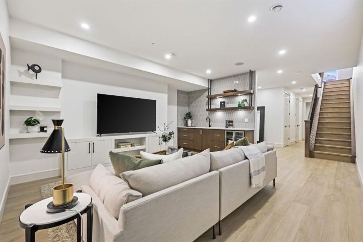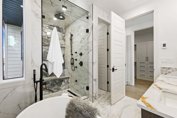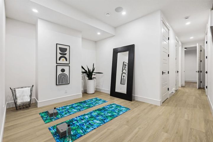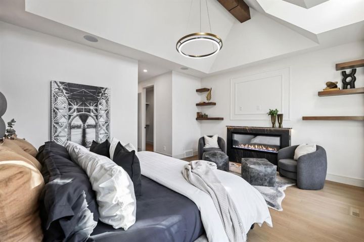 From the very first glance, The elevated exterior design of this home speaks volumes—you can feel the Luxury and Sophistication just from its Striking Curb Appeal. Nestled in one of Calgary’s most sought-after communities, This stunning residence by Edge Luxury Homes—A builder celebrated for exceptional craftsmanship and timeless design—seamlessly blends prestige with modern comfort. Its bold white stone veneer façade, complemented by custom concrete stairs and a premium exposed colour concrete sidewalk, sets the tone for the elegance within. Inside, every detail is thoughtfully curated for both upscale living and refined entertaining. The grand formal dining room welcomes memorable gatherings, while the open-concept living area—anchored by a custom gas fireplace with built-ins—creates warmth and charm. Ambient strip lighting throughout the main floor adds an elevated, contemporary touch. At the heart of the home, the chef-inspired kitchen boasts a sprawling island,High end quartz countertops, full-height custom cabinetry, and premium JennAir appliances. Expansive patio doors connect seamlessly to the large back deck, blending indoor and outdoor living. A private home office, elegant powder room with heated -cooled smart Toilet, and designer mudroom with a custom feature wall complete the main level. Upstairs, retreat to the serene primary suite with it's own fireplace for cozy nights, where a spa-like ensuite awaits—featuring a soaking tub, glass-enclosed shower with steam rough-in, dual vanities, in-floor heating, heated-cooled smart Toilet, and a walk-in closet. Two additional bedrooms each offer walk-in closets and share a Jack & Jill bathroom with dual vanities and a private shower area. The fully developed basement extends the living space with a custom media room and wet bar, perfect for entertaining. A private gym, spacious fourth bedroom, full bath, and even a rough-in for a pet wash station ensure every lifestyle need is met. Outside, the home is complemented by a double detached garage, fully drywalled and painted, offering secure parking and excellent storage. Located in vibrant South Calgary, you’re minutes from parks, boutique shopping, fine dining, and top-rated schools. A true masterpiece of modern design and everyday comfort—this rare offering is one you won’t want to miss.
