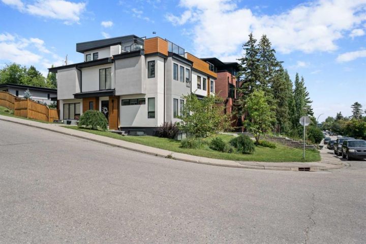 ** OPEN HOUSE: Sunday, October 26th 3-5pm ** Welcome to this beautifully designed home located in the sought-after community of Marda Loop. Offering a total of 2,740 square feet of fully developed living space, this residence perfectly blends modern luxury with practical urban living. As you step inside, a spacious front foyer welcomes you into a bright and open living room. This inviting space features large windows that let in plenty of natural light, along with a stylish corner fireplace that adds warmth and charm. The adjoining dining area is ideal for both everyday meals and special occasions. French doors open onto a private, low-maintenance courtyard, creating a tranquil outdoor space that can be enjoyed throughout the year. The impressive open staircase leads you to the upper level, where you will find three well-proportioned bedrooms along with a bonus room that can serve as a home office, play area, or additional lounge space. The primary bedroom is a relaxing retreat with a generous walk-in closet and a beautifully appointed ensuite bathroom. One of the highlights of this home is the third-level loft that opens up to an expansive south facing rooftop patio. With southwest exposure, this outdoor space is perfect for enjoying sunny afternoons, entertaining guests, or simply taking in the views. The fully finished lower level offers a cozy and versatile space that includes a wet bar, a guest bedroom, a full bathroom, and convenient laundry facilities. In-floor slab heating provides added comfort throughout the year. This home features nine-foot ceilings on all levels, which enhances the sense of space and light throughout. Hardwood flooring on both the main and upper levels adds timeless elegance to the interior. Additional features include air conditioning for climate control during all seasons and a double detached garage that offers ample parking and storage. The location is unbeatable, providing easy access to Marda Loop’s unique shops, cafes, restaurants, parks, excellent schools, and a short commute to downtown. This is your opportunity to own a truly exceptional home in one of Calgary’s most desirable neighbourhoods. Book your showing today and experience everything this beautiful property has to offer.