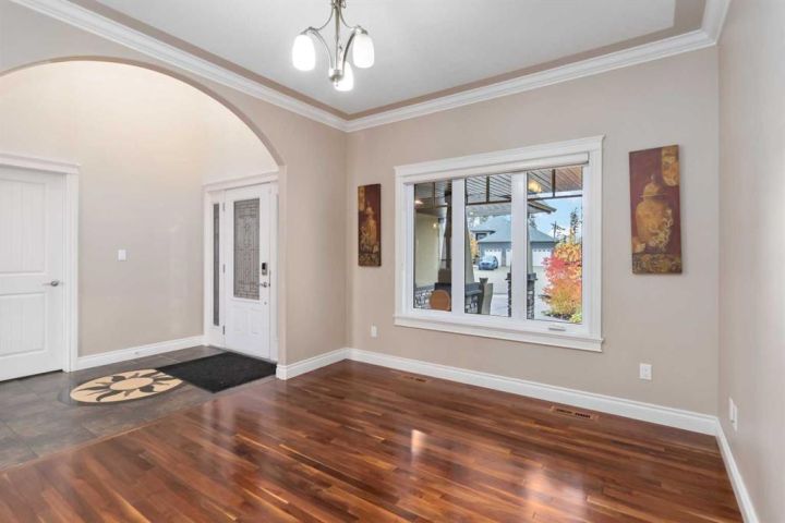 WELCOME TO 243 WILDROSE STREET, A CUSTOM-BUILT HOME IN ONE OF FORT MCMURRAY’S FAVORITE LOCATIONS, IN THE CUL DE SAC ON THIS EXECUTIVE STREET BACKING GREENSPACE AND POND, WITH A TRIPLE TANDEM HEATED GARAGE AND OVER 3700 SQ FT OFG LIVING SPACE. Original owners are saying goodbye to their stunning home in which they had custom built with a WALK OUT basement, and jaw dropping curb appeal that has repeatedly won in the Communities in Bloom competition. The exterior offers the rare find of stucco finish, stamped concrete walkways and driveway, a fully fenced and professionally landscaped yard, the rear yard finished with artificial turf, Kwik curb, upper deck and lower concrete patio along with direct access from your yard to walking paths. Not only is the exterior a rare find, so is the interior. Step into this custom design and not the beautiful foyer title work that leads to a large front sitting room or office, then you are engaged by the breathtaking views from the windows that fill the entire wall in the great room. The Great room features hardwood floors and a floor to ceiling feature wall of stone that offers a gas fireplace. The open concept living area continues with a top of line kitchen featuring solid wood cabinetry, granite counter tops, custom range hood, built in appliances, including a gas stove. In addition, you have a massive walk-through pantry with windows. The dining room overlooks your yard and features pond views and garden door leading to your covered deck with glass rails. In addition, on this level you have a 2-pc powder room, large walk-in mudroom and closet. The staircase leads you to the upper level with a large landing that overlooks the main level and features 4 BEDROOMS UP and 2 full bathrooms, along with upper-level laundry. The Primary bedroom offers a walk-in closet an ensuite with heated title floors, jetted tub, and walk in shower with body sprayers. The entire main and upper level is covered in hardwood and tile floors. The lower-level features large above ground windows on this walk out basement that is finished with a full kitchen with that features a wraparound breakfast bar, a full set of appliances, large family room and 2 large bedrooms and full bathroom and laundry. All completed with the same luxury finishes as upper level. To complete this lower level, you have double garden doors leading to your lower concrete patio. OTHER FAB FEATURES INCLUDE A HIGH VELOCITY HEATING SYSTEM WITH INFLOOR HEAT IN BASEMENT AND GARAGE, CENTRAL A/C, HUNTER DOUGLAS SILOUETTE BLINDS. This an excellent opportunity to own an executive home in a sought-after neighborhood, close to schools, shopping and more. Call today and schedule your personal tour of the remarkable home today.