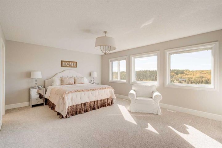 Proudly presenting 147 Legacy Mount SE—a truly inspiring residence situated on the highly coveted Legacy ridge. This 3100 SF 4-bedroom luxury family home is the epitome of artful craftsmanship, refined interiors, & breathtaking views. The open-concept main floor showcases striking architectural details including white oak hardwood floors, elegant wainscotting, a curved staircase, rounded corners & expansive windows that bathe the interior in natural light. The kitchen stands as a true showpiece featuring bespoke cabinetry, exquisite quartz slab countertops, premium stainless-steel appliances (including a 6-burner gas stove top & 2 wall ovens), a double-sided island, well-appointed butler’s pantry, 2nd pantry (walk-in) & adjacent sundrenched breakfast nook with charming banquet & beautiful views of the ravine. The spectacular views continue from the elegant living room with expansive glass doors providing access to a large rear deck while the dramatic floor-to-ceiling fireplace with marble surround & a graceful chandelier bring luxury & sophistication. An inviting dining room with seating for 10 further elevates this exceptional space. The oversized mudroom boasts extensive built-ins delivering valuable organization to this highly practical area. Lovely French doors open to a bright dedicated home office while a pretty powder room completes the tastefully curated main floor. The custom milled curved staircase creates a grand entrance to the light-filled upper level where the centrally situated bonus room offers beautiful views & provides a relaxed space for family movie and games nights. The thoughtful 2nd floor layout places three generous-sized bedrooms at the front of the home while a smartly designed family bath with double vanities further enhance the comfort & appeal of these inviting retreats. The airy primary suite presents a tranquil sanctuary overlooking the back yard, pathways & ravine. The stunning ensuite exudes spa-like luxury featuring a large dual sink vanity & quartz countertop, separate shower, opulent stand-alone tub and leads to a generous walk-in closet. A convenient 2nd floor laundry room rounds off the upper level. The walk-out lower level offers an additional 1435 SF of potential living space. Equally impressive is the extraordinary curb appeal displaying stone accents, mullioned windows, aggregate drive & walkway. The quiet South-west-facing backyard offers a tranquil setting perfect for watching the children at play, summer barbecues, or simply unwinding at the end of the day while taking in the magnificent views. Other notable highlights of this remarkable property include 1) double oversized attached garage, 2) two air conditioning units, 3) Kinetico water system, 4) 75-gallon HWT, & 5) GEMSTONE lighting. Situated close to parks, walking pathways, shopping, & schools this unparalleled property delivers a wonderful family lifestyle in an outstanding location. Welcome home to 147 Legacy Mount SE where discerning design meets timeless luxury.