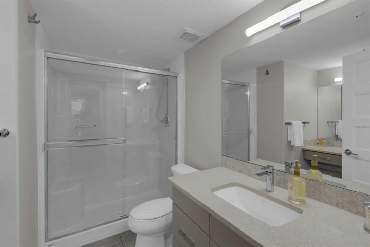Welcome to The Pinnacle at Kincora — a boutique, meticulously crafted condo complex by Cove Properties, one of Calgary’s most trusted and award-winning multifamily developers celebrated for their commitment to quality and design excellence. Tucked away in one of Kincora’s most peaceful pockets, this elegant 2-bedroom plus den (or office), 2-bath residence offers the perfect blend of comfort, style, and functionality — all within walking distance to scenic parks, pathways, and convenient shopping. Boasting 1,156 sq. ft. of single-level living, this spacious and beautifully upgraded home features quartz countertops, designer tile, LVP flooring, and elegant fixtures and finishes throughout. The high-end KitchenAid stainless-steel appliances remain under warranty and are complemented by a chef-style hood fan and a bright, modern aesthetic highlighted by brand-new upgraded lighting. Enjoy year-round comfort with a portable A/C unit, and unwind in style with new custom shutters framing every window for added privacy and sophistication. Unlike many condos, this home includes two titled underground heated parking stalls plus bike storage, offering convenience and flexibility for owners. Step outside to your private covered patio — the perfect spot to relax after a long day and enjoy your own quiet outdoor retreat with a gas line for your bar-b-q. Unit 3109, a former show suite until just three years ago, has been meticulously maintained and lightly lived in. It showcases painted warm beige cabinetry and a bright, inviting atmosphere throughout. Situated in a secure, maintenance-free, 18+ building, The Pinnacle at Kincora delivers a rare combination of luxury, peace of mind, and effortless living. Pets are allowed upon board approval. Don’t miss your opportunity to make this remarkable home yours — contact your Realtor today to book a private viewing!