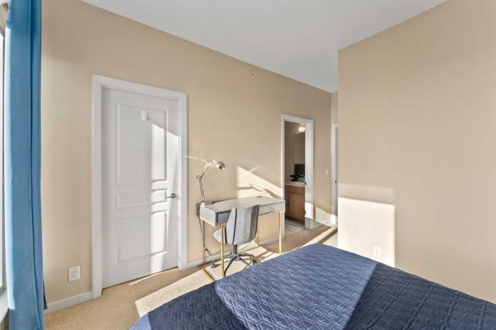 Welcome to the prestigious Alura! This expansive 800 sq. ft. corner unit on the 27th floor boasts soaring 9-foot ceilings and breathtaking eastward views, perfect for witnessing Alberta’s stunning sunrises. Crafted with modern living in mind, the open-concept layout seamlessly connects a spacious kitchen and living area, making it the perfect setting for both relaxation and entertainment. Both bedrooms are generously proportioned, with the primary suite offering a walk-through closet leading to a stylish four-piece ensuite. Floor-to-ceiling windows flood the home with natural light, framing panoramic views of the Calgary Stampede. This unit includes a titled underground parking stall, a dedicated storage locker, and access to visitor parking. Residents benefit from premium amenities, including an on-site fitness center, resident lounge, full-time concierge service, and round-the-clock security. Ideally located within walking distance of downtown, 17th Avenue, Stampede Park, Starbucks, Shoppers Drug Mart, Sunterra Market, and the Victoria Park C-Train station, it also offers quick access to scenic river pathways for cycling and walking. Experience the best of 18+ living. Schedule your private viewing today and discover this remarkable home!
