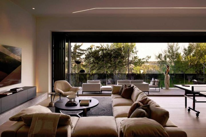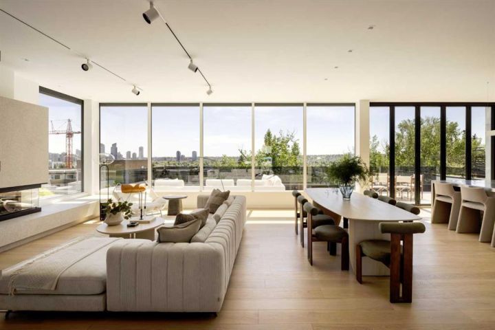 Nestled in the prestigious Briar Hill neighborhood, this warm contemporary masterpiece, built by Wurzer Page Homes, spans 6,000 sq ft of exquisite living space, embodying California-inspired design and exceptional craftsmanship. Designed by R-EID Studio as a true architectural gem, this south-facing home boasts unequaled city views from every level, with all three exterior patio spaces basking in southern light, framed by an oversized Loewen window package. Constructed with steel, wood, and concrete, the residence exudes sophistication with high-end quartzite and stone finishes, matte white California Faucets, and a stainless steel island. The entire home operates on a Lutron control system, featuring designer light fixtures throughout, including a stunning Bocci light fixture above the basement bar. Designed for seamless entertaining, the walkout basement offers a 12-foot ceiling and a 36’ wide folding door, blending indoor and outdoor living. Perfect for hosting or relaxation, the home includes a 400 sq ft dedicated gym, a serene office with floor-to-ceiling windows, and heated floors in the basement and garage, with rough-in for driveway heat. Located in a tranquil setting next to green space, surrounded by luxury homes, it’s close to downtown and hospitals. With too many features to capture in print, this home must be experienced in person—a private tour is recommended. Potential buyers are advised to drive by at night to witness the captivating illumination.