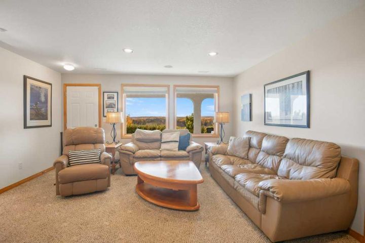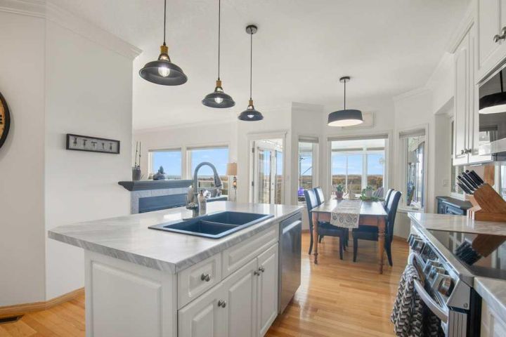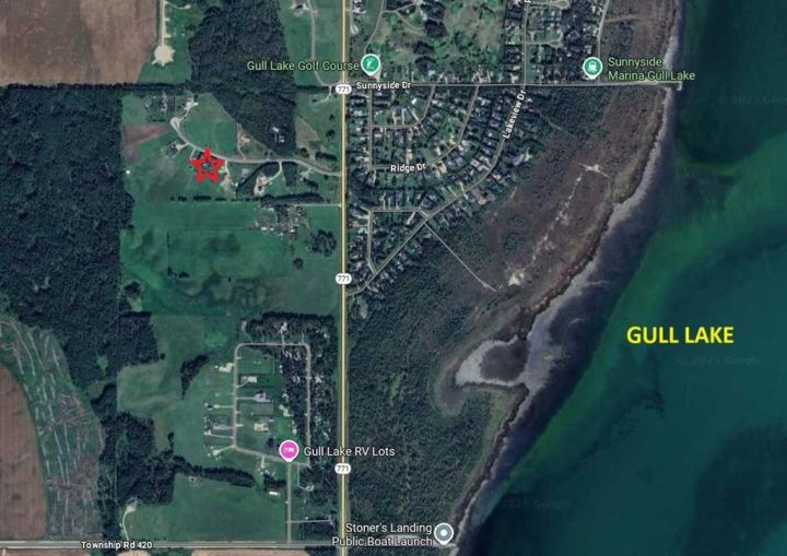 Discover the tranquility of this BEAUTIFUL WALKOUT BUNGALOW, perched on 3.51 acres of a pristine property. Settle in for stunning views of both Gull Lake and the gorgeous countryside. The earthy tones of stucco and stonework are accented with archways of Spanish flair. The triple car garage provides plenty of indoor parking. Warm hardwood floors lead you thru the hub of the home. Walls of windows allow for ample natural light, along with picture perfect scenery in every season. The kitchen features crisp white cabinetry, stainless steel appliances, and an island for additional seating and prep work. The dining room boasts beautiful built ins, perfect for displaying treasured items. Step thru the garden door to lounge in the three season sun room. Glass doors lead to the expansive patio. Bask in the sunshine or the shade under the retractable awning. Later on, escape to the recently renovated primary bedroom, boasting double vanities, granite countertops, and a gorgeous glass shower. Main level laundry and a large mudroom are an added luxury. The walkout basement lends itself to entertaining with the wet bar and easy access to the back patio and yard. Two additional bedrooms and 3-piece bathroom offer perfect accommodations for children or company. Storage will never be an issue with this floorplan, including a 7 x 10 cold room for your fall harvest. The backyard is beautifully landscaped with mature shrubs, pretty perennials, and tall bordering trees. You will enjoy the expansive area for outdoor activities, gardening, or simply taking in the stunning views. The 16' x 20' shop has power and provides ample space for toys and tinkering. A parking pad is perfect for your RV or your guests' trailer. 2025 Upgrades: Primary Bedroom Renovation including new LUX windows. 2024 Upgrades: NEW appliances, sink & countertop in kitchen, shingles on house and garden shed, eavestroughs, garage doors, and 50 gallon HWT. 2023 Upgrades: NEW washer & dryer. Conveniently close to a marina, two boat launches, a golf course, and campgrounds. An acreage lifestyle offers the perfect blend of freedom, space, and connection - to both nature and family. Whether you are sipping coffee while watching the sunrise or hosting friends under the stars, this property offers the perfect blend of rural serenity and modern comfort. Treat yourself to a tour today!