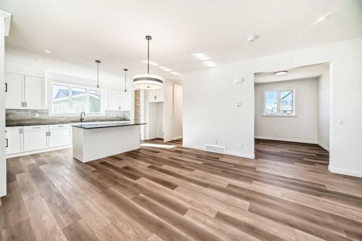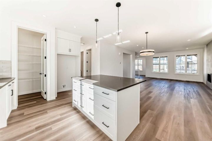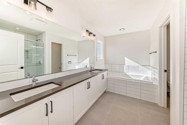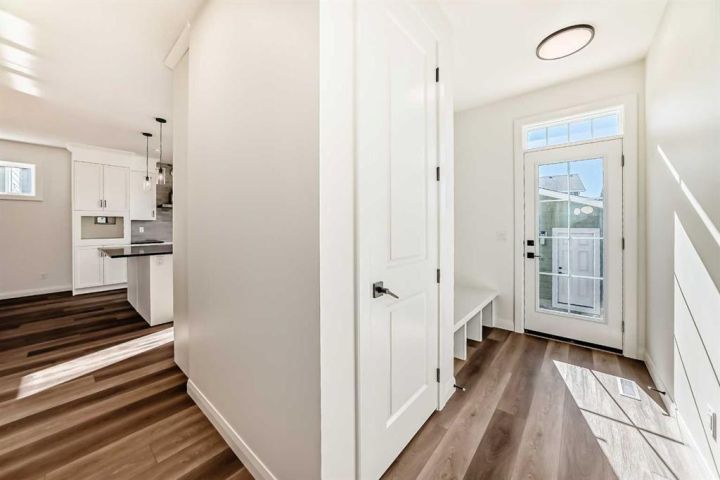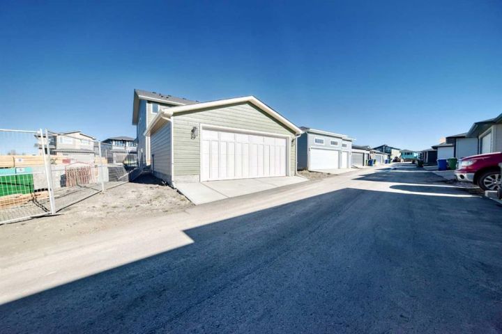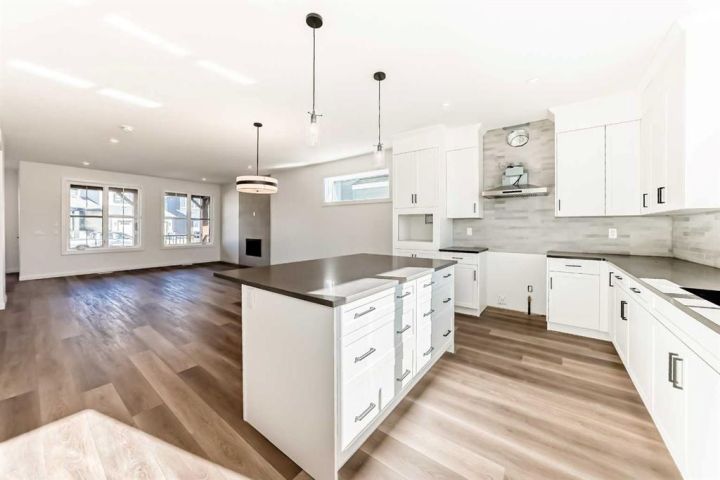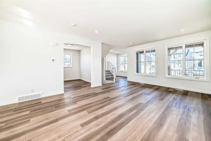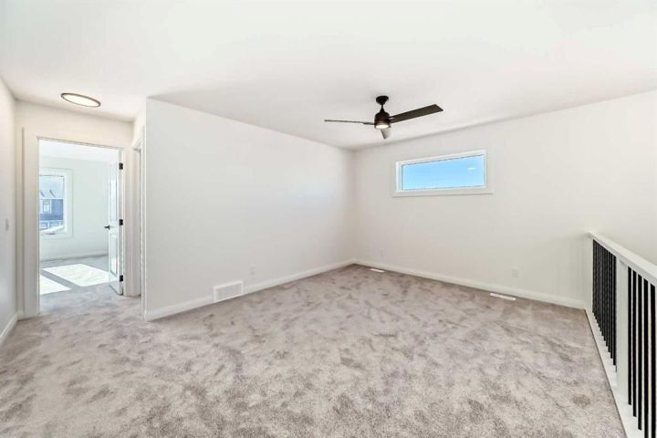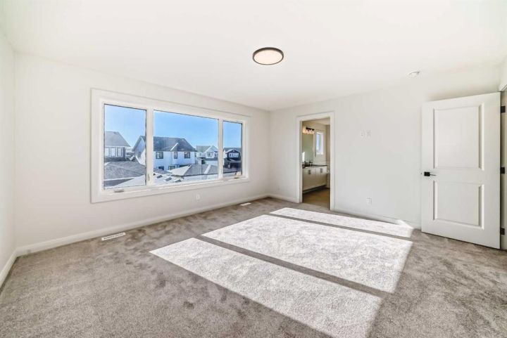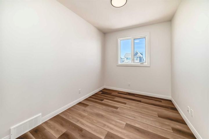 Contemporary sophistication meets everyday living in this 2,359 ft² home in Harmony. The three-bedroom, two-and-a-half-bath layout is thoughtfully planned and finished with elevated interior selections. A generous main-floor office supports work-from-home days, while the living room is anchored by a stylish gas fireplace. The bright white kitchen and dining area flow together for effortless entertaining. Upstairs, a versatile bonus room makes a perfect media lounge or play area. The primary suite is a true retreat, complete with a spa-inspired ensuite featuring a beautiful walk-in shower and a large walk-in closet. Convenience continues in the dedicated laundry room with upper cabinetry and a folding counter above the washer and dryer. The unfinished basement is a blank canvas for additional living space and is roughed-in for a future bathroom. Outdoor details include an exposed-aggregate walkway and a stamped-concrete front entry. Parking and storage are easy with the oversized 21' x 24' double garage. Set within Harmony, one of the most sought-after lake communities, you are just minutes from parks, pathways, golf, lakes, and quick mountain access.