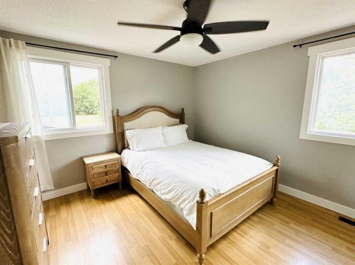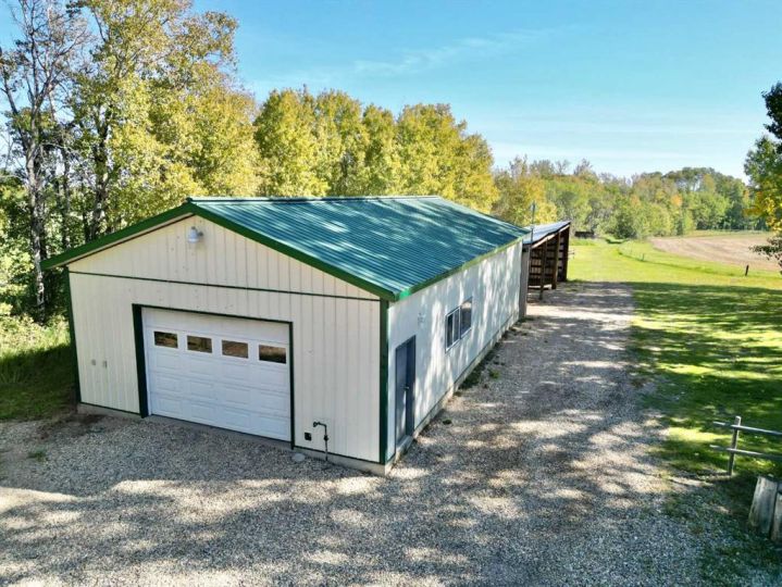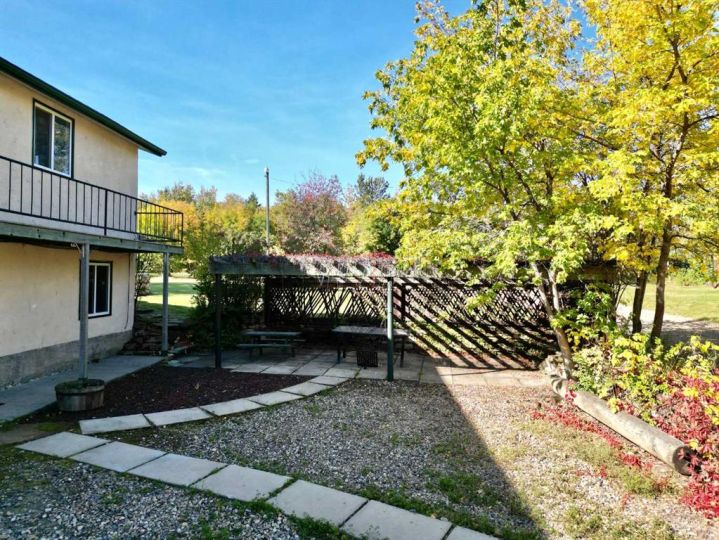 Private acreage retreat on 85.55 acres with a large shop and charming home! 85.55 acres of beautiful countryside and rolling farmland and mature trees surround a warm and inviting character home that offers a blend of rustic charm and modern convenience making it the perfect place to settle in and make it your own! It isn’t just one thing with this property but everything combined that make this place a one of a kind. Only minutes from town limits and the hustle and bustle of town yet connected to the water co-op, this four bedroom, 2.5 bathroom house wows the second you pull in the beautifully landscaped yard with circular driveway. Great design features and character accents warm this home. A stunning stone fireplace in the great room is complemented by a rich, vaulted wood ceiling and warm hardwood floors. This is the heart of this home and it shows. Directly adjacent is the huge kitchen boasting ample storage, plenty of cupboards and granite countertops. This is also where you will find the spacious dining area. On the other side of the great room is a very large family room/media room giving you space to escape and enjoy movie night as a family. The upper level hosts three of the four bedrooms plus the totally overhauled main bathroom and there is also an updated 1/2 bathroom off the primary suite. The primary suite also offers you a little private balcony. The fully finished basement gives you another refreshed and updated bathroom, bedroom, over-sized laundry room with folding counter and plenty of storage and there is another family room with a stone fireplace and walk-out to the secluded yet cozy patio area. This property also offers up a 29x42 fully finished and heated shop and adjacent pole shed for storage, a greenhouse, playhouse for the kids and a root cellar to end all root cellars that is rigged with A/C cooling-perfect for the hunter to hang their meat! You can also store the bounty from your garden here and enjoy home grown vegetables all of the time. Quiet and very private, the views out over the rolling fields and down to the hills of the valley will never get old! Charm and character yet in a modern home offering all the amenities and a location second to none that is close to town yet offers privacy and views. This sounds like perfection and it sounds like you have found your next home!