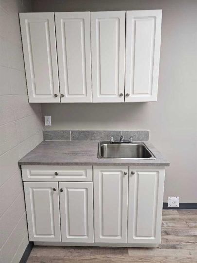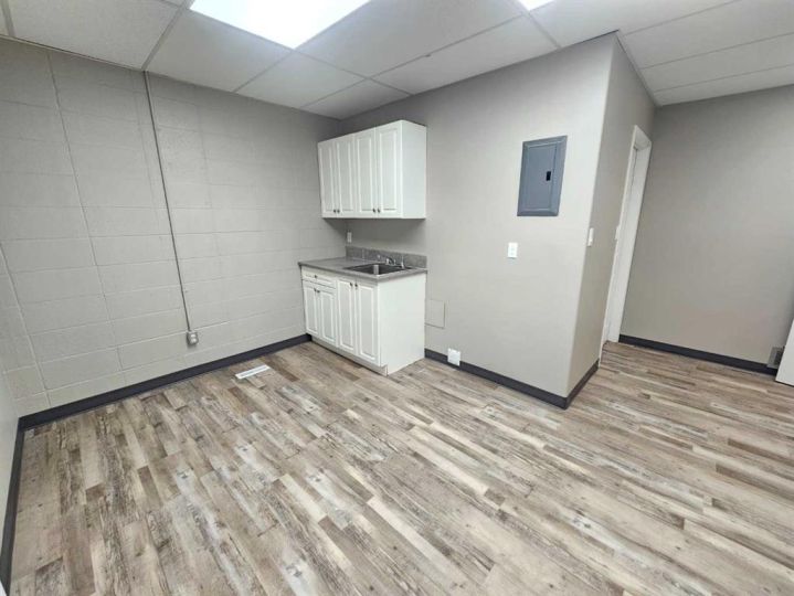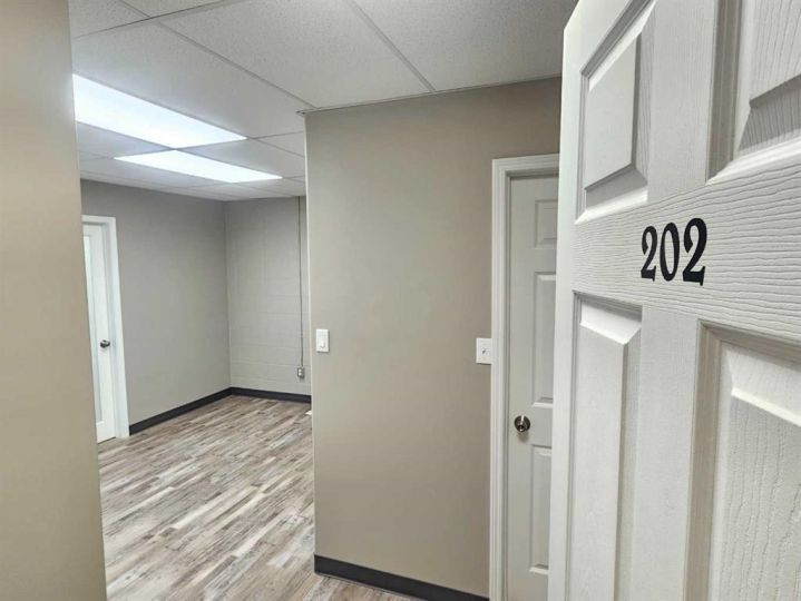 Bright and modern, fully renovated, second floor office space. Featuring stylish vinyl plank flooring throughout and large bathroom boasting walk-in tiled shower and hookups for laundry system. There is an open space with kitchenette/coffee area, 2 storage closets as well as 2 office rooms. Monthy rent includes all tripple net costs