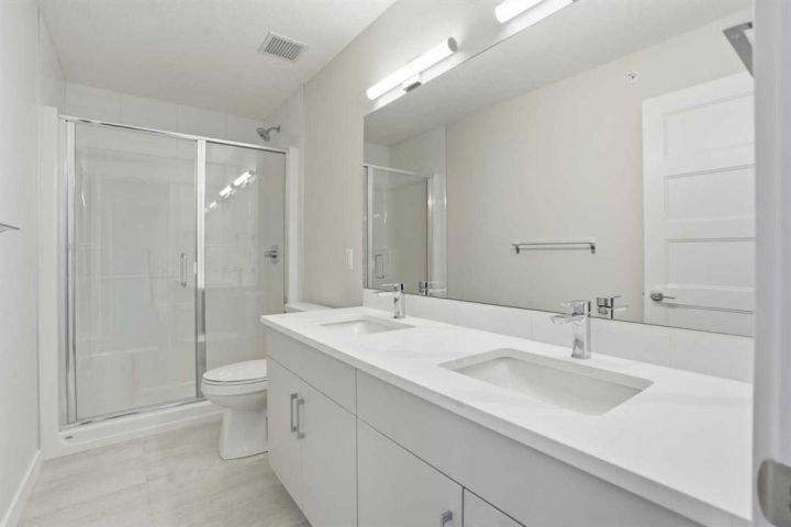 Welcome to The Whitney in Springbank Hill! This brand-new, top-floor corner condo offers the perfect blend of modern design, functionality, and convenience, just steps from Aspen Landing’s 50+ shops and services, close to the C-Train and transit, and minutes from 17th Ave SW and downtown. The Madison floor plan features two spacious bedrooms, each with an ensuite, and a bright open concept living area that flows seamlessly to a covered balcony with glass railings, providing park views. The chef-inspired kitchen boasts Samsung stainless-steel appliances, a quartz island with eating bar, and soft-close cabinetry, while practical features include air conditioning, in-floor heating, in-suite washer/dryer, indoor parking (#29) with extra storage, and a private locker (#18), Extensive fire suppression system located throughout the building including the balconies, closets and attic area with Premium sound attenuation assemblies. With 871 sq. ft. (RMS), this home combines style, comfort, and convenience, with walking paths, shops, and restaurants just steps away, offering the ideal mix of city living and natural beauty.