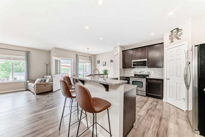 OPEN HOUSE - SUNDAY OCTOBER 19TH - 1:00PM - 4:00PM - MOVE IN READY FOR YOU TO CALL HOME. Set on a quiet street with GREENSPACE OUT FRONT, NO NEIGHBOURS BEHIND, and a PARK AND PLAYGROUND just across the street, this two-storey home hits every mark for comfort, connection, and everyday function. With almost 2300 sq ft in this FRONT ATTACHED GARAGE home, you will find great value while it checks all the boxes. Inside, the TWO STOREY FRONT FOYER opens to a layout that gets it right from the start. The kitchen balances style and practicality with a CENTRAL ISLAND, stone counters, and a WALK-THROUGH PANTRY tucked perfectly between the mudroom and cooking space. A dedicated DINING ROOM OR FLEX SPACE beside the kitchen makes hosting effortless, while the bright rear nook turns weekend pancakes into tradition. In the living room, a GAS FIREPLACE brings warmth and a natural gathering point to the main floor. The MUDROOM is every organizer’s dream—complete with a UTILITY SINK and direct access to the kitchen through that convenient pantry connection. Upstairs, the flow continues. Three bedrooms and a BONUS ROOM shape a floorplan that actually feels livable. The primary bedroom is spacious and calm, with a spacious ENSUITE that delivers on every wish: a SOAKER TUB, DUAL-SINK VANITY, and a WALK-IN CLOSET that makes mornings manageable. Downstairs, the unfinished basement offers endless POTENTIAL—whether that means a home gym, media room, or play zone down the road. But the real magic happens out back. The TWO-TIERED DECK and PERGOLA create a perfect outdoor stage for relaxing or entertaining. The yard is PRIVATE, LANDSCAPED, and ready for summer gatherings, complete with an OVERSIZED SHED for all the extras. It’s the kind of property that feels like it belongs exactly where it is—front and back both look toward green, with no sense of crowding. That balance of privacy and openness is rare, and it’s what makes this home stand out. Located in KINCORA, one of Northwest Calgary’s most FAMILY-FRIENDLY communities, you’re surrounded by scenic pathways, parks, and every convenience nearby. Creekside and Sage Hill Shopping Centres, public transit, and Stoney Trail are all just minutes away—making errands, school runs, and commutes as easy as life should be.
