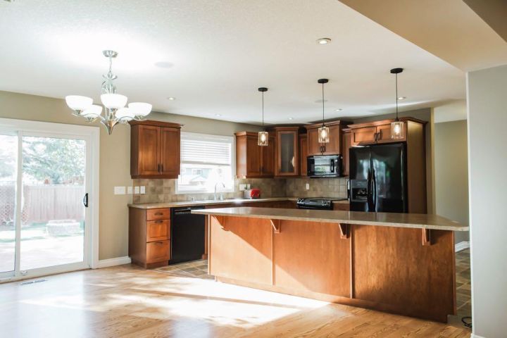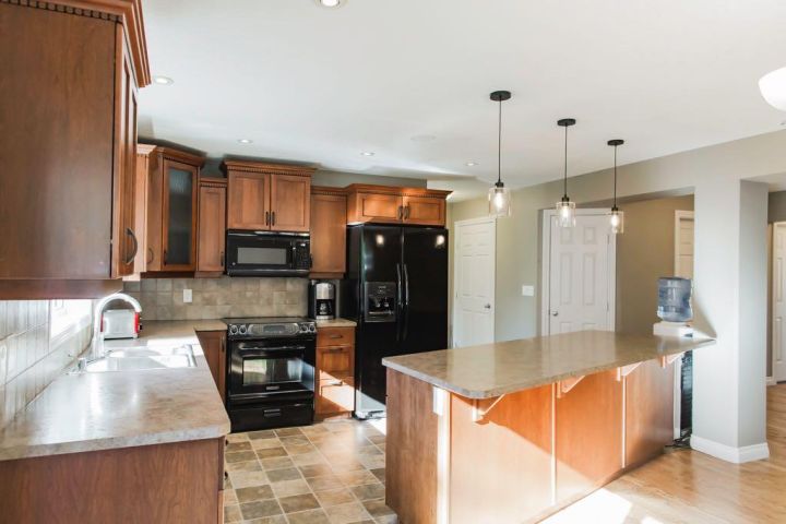 This stunning 2-storey home is tucked away on a quiet street in the heart of Mission Heights, with an easement and walking path nearby for added privacy and convenience. With over 2,100 sq. ft. of living space, 5 bedrooms plus an office, and 3.5 bathrooms, this property offers space for the whole family. A major renovation and addition completed in 2006, paired with a backyard that feels like a private retreat, means this home blends timeless character with modern updates. The curb appeal is inviting with stone accents, mature landscaping, and a long driveway that fits up to 5 vehicles—or tandem parking for 2 plus RV space and a heated garage. The west-facing backyard is a true highlight with mature trees, a storage shed, paver stone patio, low-profile deck, and plenty of space to entertain or unwind in the evening sun. Inside, the layout is both practical and charming. The main floor features beautifully refinished hardwood floors in a light, modern tone, including new hardwood in the office. Fresh paint on baseboards, doors, trim, the main upstairs bath, primary bedroom, and window casings adds a crisp, updated feel. A spacious living room with a cozy gas fireplace creates the perfect gathering spot, while an additional sitting area offers flexibility. The generous dining space is ideal for hosting, and the kitchen stands out with custom Lafleur cherry wood cabinetry, ample storage, modern appliances, and bright garden doors leading to the deck. Functionality continues with a large boot room off the heated garage, main floor laundry, a handy half bath, and a versatile office to suit your needs. Upstairs, the massive primary suite is a true retreat with a large walk-in closet and spa-like ensuite featuring heated tile floors, dual sinks, soaker tub, and stand-up shower. Two more bedrooms are also on this level—one oversized with a walk-in closet, the other comfortably sized. A full bathroom with a natural sun tunnel brings in warm daylight. The basement adds even more space with two additional bedrooms, a 3-piece bathroom, large rec room, utility room, and hook-ups for optional secondary laundry. This home has been exceptionally well maintained with thoughtful upgrades: freshly refinished hardwood, fresh paint, newer blinds (including in garage), newer furnace, updated venting, dual hot water tanks, upgraded lighting, some electrical and plumbing updates, surround sound wiring, and more. Recent touches include a furnace service, refreshed gravel in the overpass and window wells, and ongoing maintenance to keep the home in top condition. Designed for comfort and function, this is a rare find that combines charm, space, and smart updates. Mission Heights is one of Grande Prairie’s most loved neighbourhoods. Families love its walkability and access to schools—two K–9s, two high schools—plus the Eastlink Centre and countless parks. Homes here don’t last long. This one truly has our heart!