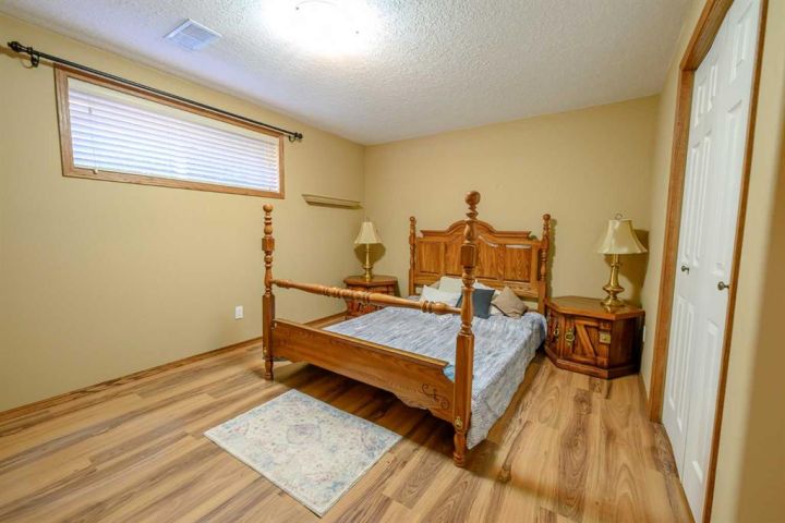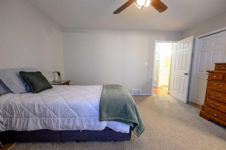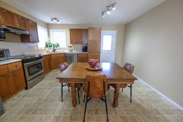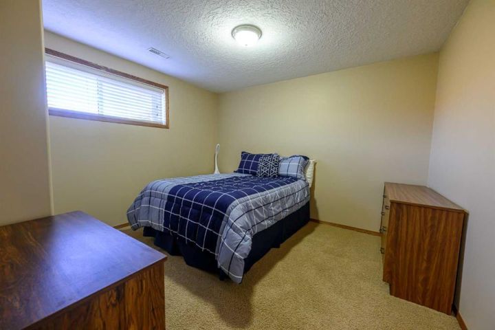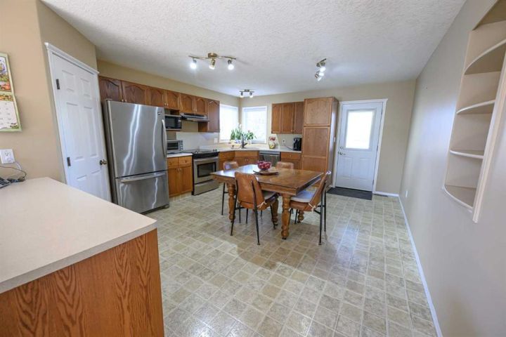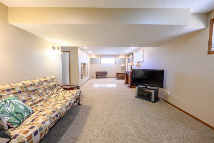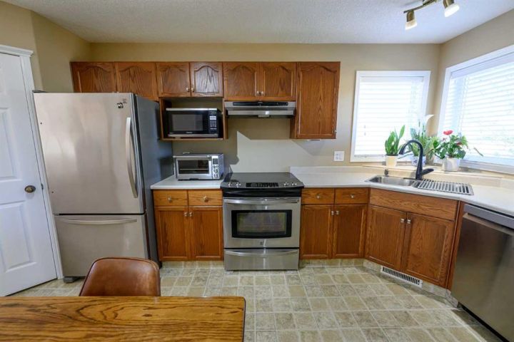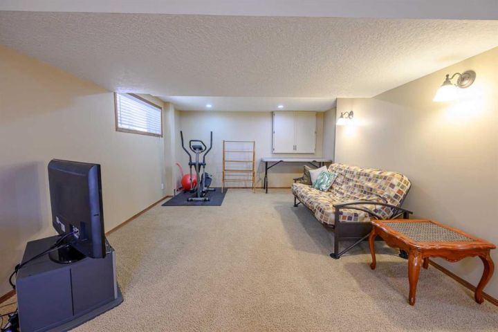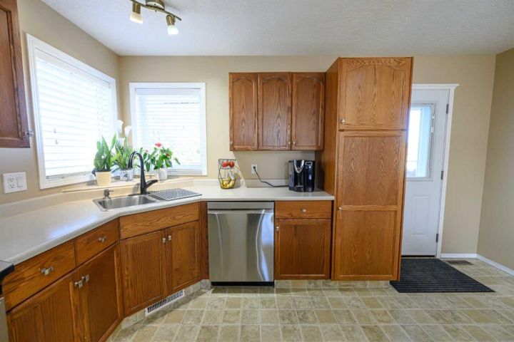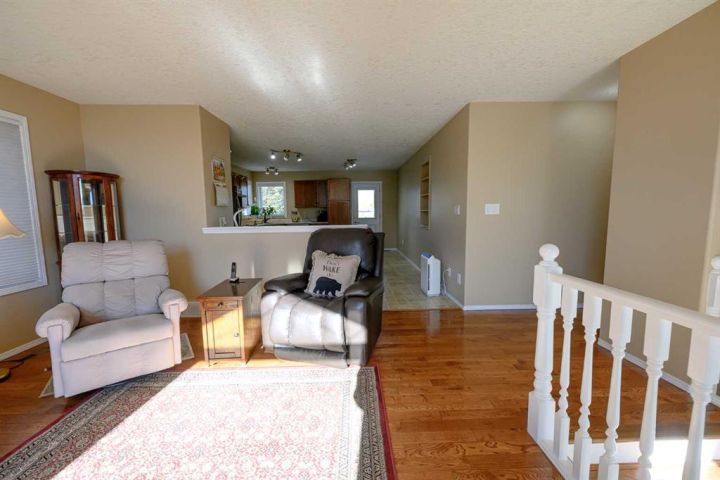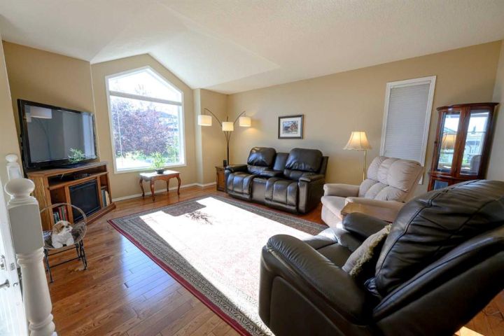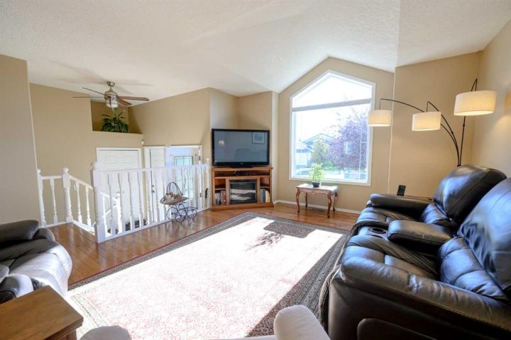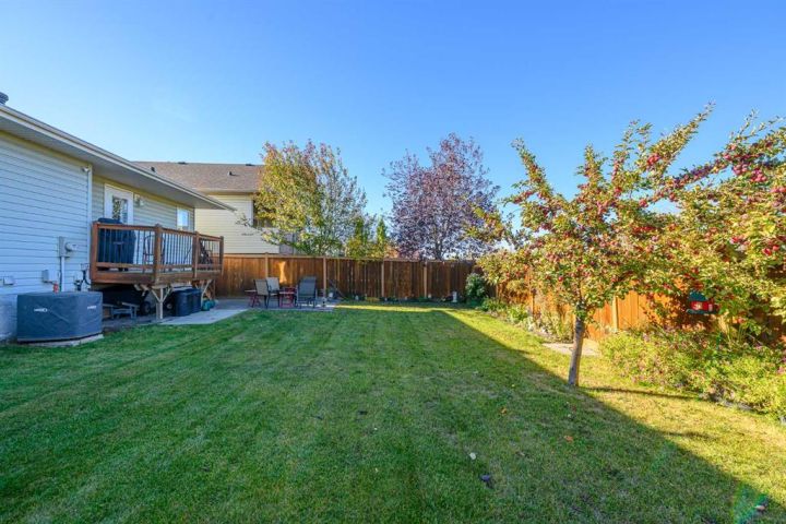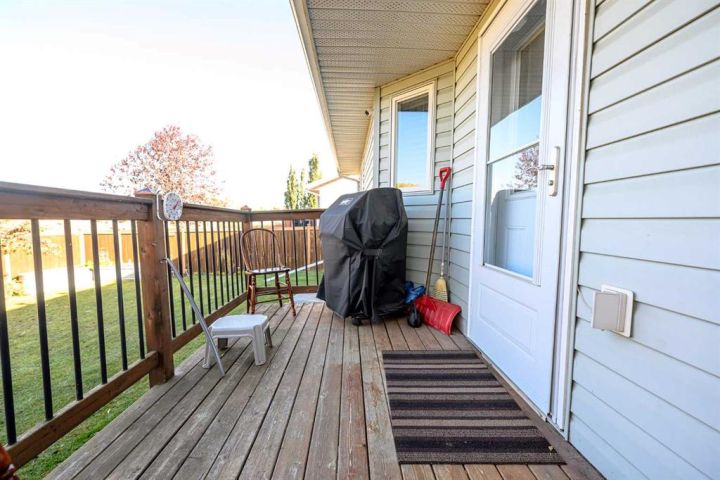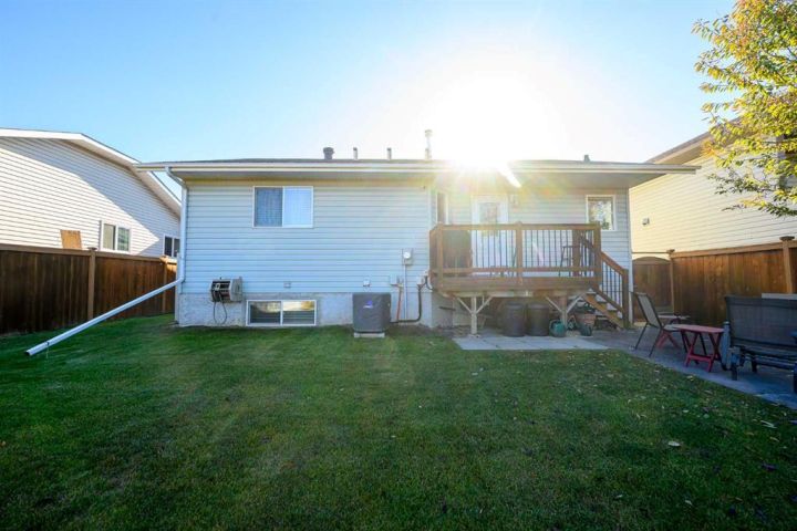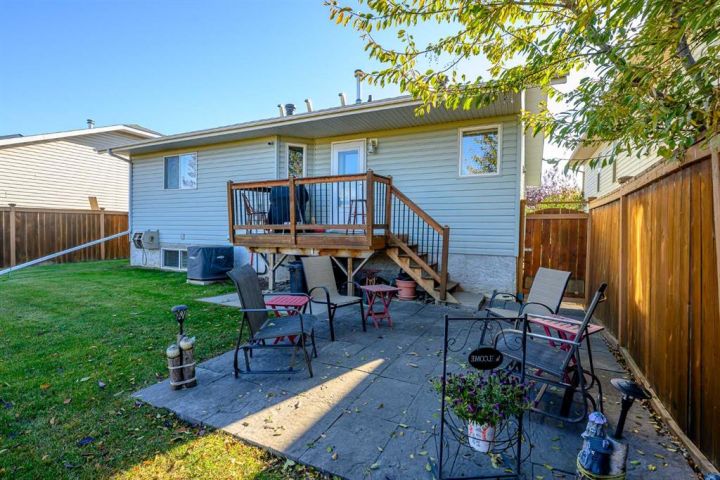 This fully developed home is perfectly located in the desirable Country Club West neighborhood — ideal for a growing family. The upper level features an open-concept layout with hardwood flooring in the living room, a bright kitchen with ample cabinets and counter space, and newer appliances. Upstairs offers three spacious bedrooms, including a comfortable primary suite with a walk-in closet and full ensuite. The fully finished basement adds even more living space with a large family room, two additional bedrooms, a full bathroom, and generous storage. Enjoy the outdoors in the fully landscaped yard complete with a deck and patio area. The attached garage is finished and heated — perfect for Alberta winters. Located just a block from two schools, green spaces, and walking trails, and only minutes from the Eastlink Centre and Design Works Ice Rink. This well-kept home is move-in ready — book your showing today!