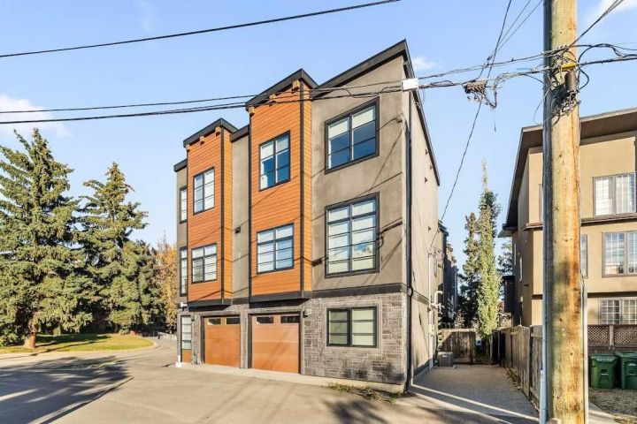 Step into timeless sophistication in the heart of Parkhill, one of Calgary’s most coveted inner-city communities. This executive three-storey end unit blends modern design, refined finishes, and an unbeatable location steps from Stanley Park. Enter via the private front door or directly through the attached garage. The ground level opens to a bright, versatile flex space - ideal for a polished home office, fitness area, lounge or extra storage. A full paint job and thoughtful details set an elevated tone from the moment you arrive. Sunlight pours across the open-concept main living floor, offering hardwood floors and lofty ceiling heights. The gourmet kitchen features ceiling-height cabinetry - including dedicated pantry cabinets for small-appliance storage and overstock, quartz countertops, a sleek metallic designer backsplash, and stainless steel appliances with a gas range. Walk out to a private balcony for morning coffee, or cozy alfresco dining at night. Seamless flow to the dining and living areas creates an effortless setting for both intimate evenings and spirited entertaining. Ascend to the third level to discover two spacious and elevated primary suites, each with an opulent, spa-inspired ensuite bath and a custom walk-in closet for boutique-level organization; a convenient laundry area with upgraded washer and dryer sits between the bedrooms for everyday ease. This freshly, professionally painted residence also offers central air conditioning to keep you cool during Calgary’s hot summers, a single attached garage, and low-maintenance, lock-and-leave living - perfect for winter getaways. Outside your door, Stanley Park awaits - with pools, tennis courts, a baseball diamond, miles of Elbow River pathways for cycling, running, or peaceful walks. You can launch a kayak or enjoy riverbank views within minutes of leaving your front door - an inner-city rarity. Or just enjoy an expansive green space, while microbreweries, cafés, and restaurants are an easy stroll away. Being only a 5-minute drive to downtown Calgary, you have instant access to the city’s business core, the Beltline, and lively 4th Street or 17th Avenue districts for shopping, dining, and nightlife. This is Parkhill living at its most refined: location, design, and lifestyle, all beautifully aligned. **OPEN HOUSE, Sunday October 19th from 11:00am - 1:00pm**
