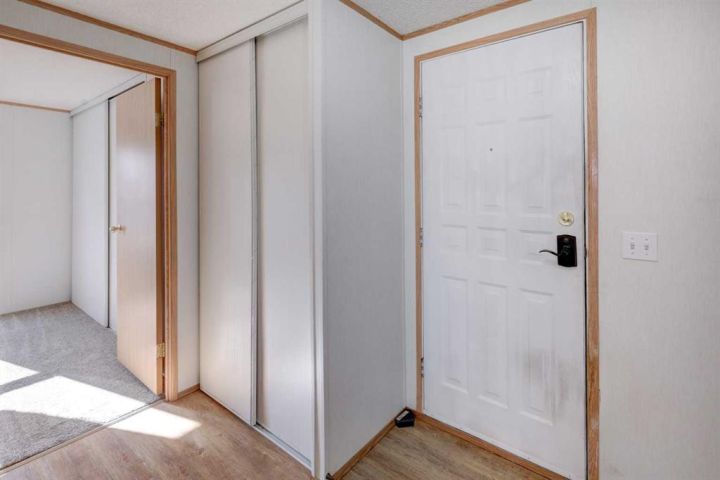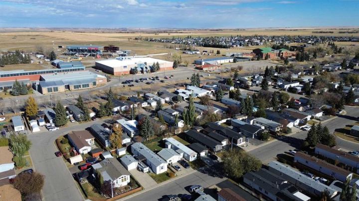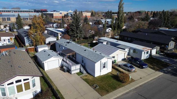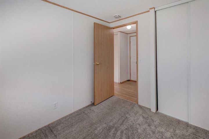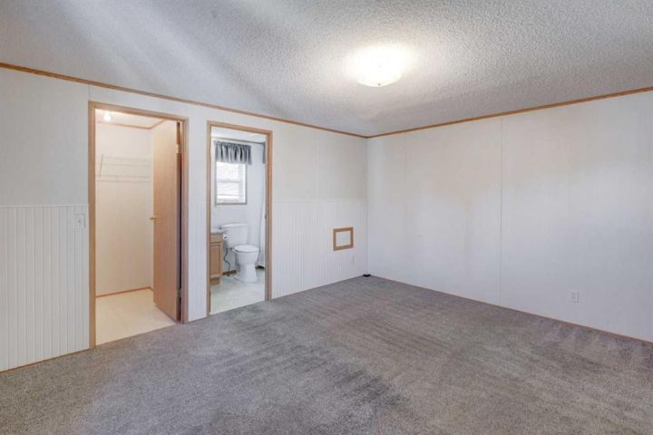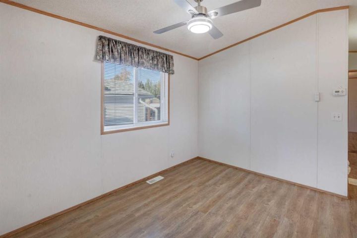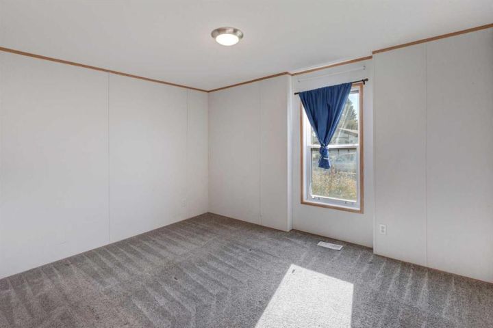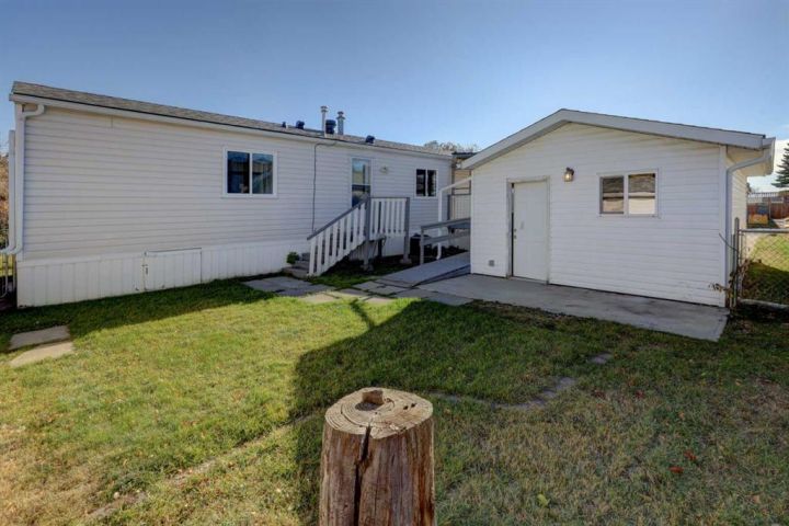What a fantastic opportunity to own your own home on your own TITLED LOT with a detached garage! NO condo fees and NO lot fees! Situated on 43x100 FT lot within walking distance to schools and recreation facilities, this 3 bedroom 2 bathroom home is waiting for you! There is 1178 sf of living space in this 2000 Moduline featuring an open concept floorplan. The kitchen has upgraded granite countertops and all appliances are included, even the washer and dryer. The home has beautiful large windows facing West keeping your space bright with all the natural light. In summers you have the luxury of central air to keep you cool! The property has been fitted for a wood stove if you prefer using it as a means of heat in the winter months. The primary bedroom is large enough to accommodate a king bedroom suite and there is a full en suite with a soaker tub. Adjacent to the second and third bedrooms is a full guest bathroom also with granite adorning the vanity. If you prefer spending more of your time outdoors, perhaps the covered deck has caught your eye. The yard has inground sprinklers and room for a garden or space to throw around the ball (Baseball fever right now). The detached garage can be used for parking or a shop for hobbies, as there is additional room on the paved parking pad for 2 vehicles. This home is available for a quick possession. I have included the floorplan in the photos for your convenience. NOTE: The shingles on home and garage new as in 2025. Call your Realtor® to book a showing for this property and move in before its officially winter!