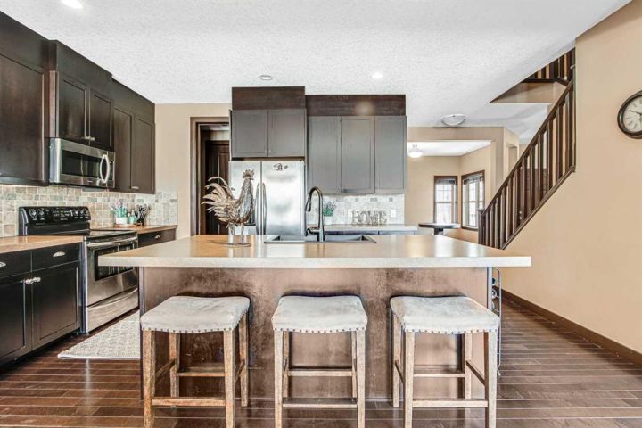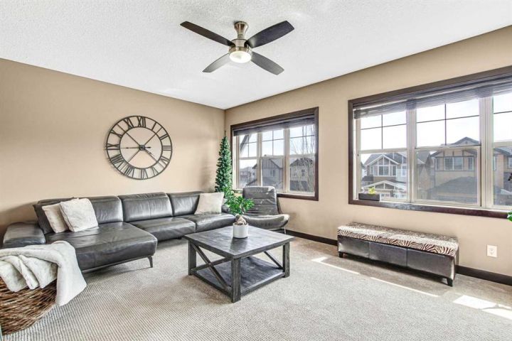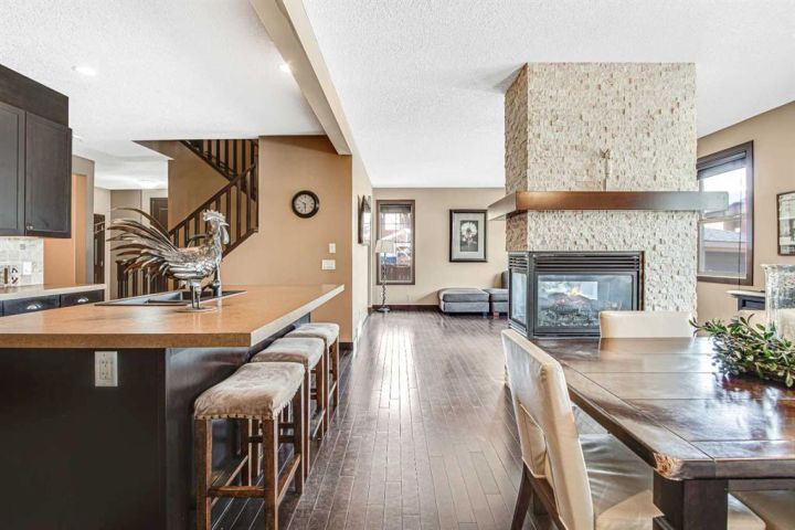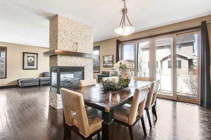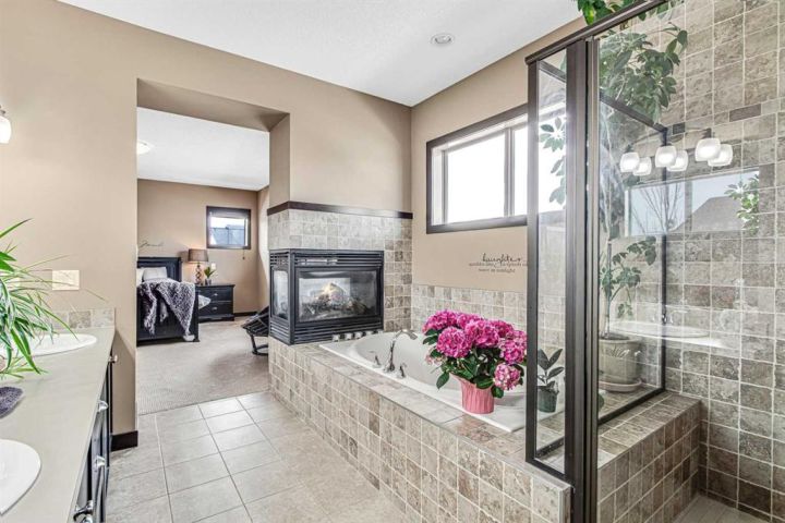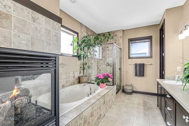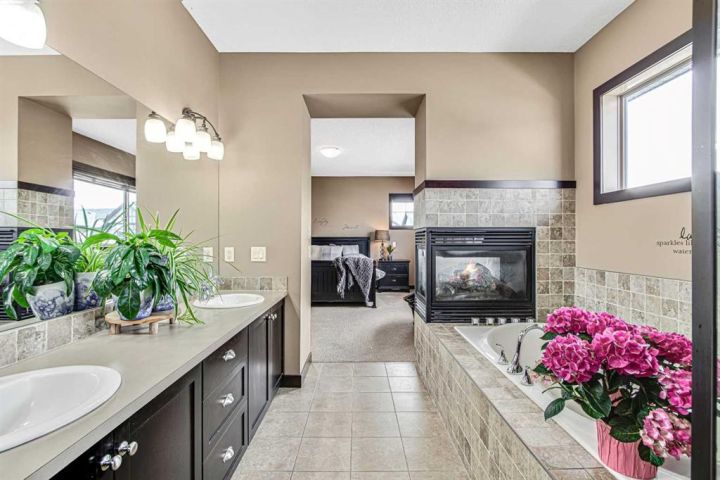 Welcome to this bright and spacious home in the desirable community of Evergreen! Perfectly situated on a corner lot, this south facing property offers over 2,800 sqft above grade and incredible potential for basement development. The open concept main floor features a stunning three sided fireplace connecting the kitchen, dining and living areas - a true centerpiece for entertaining. You’ll also find a dedicated main floor office, mudroom and a separate computer nook, ideal for work or study. Upstairs offers three generous bedrooms, including a luxurious primary suite complete with a cozy three sided fireplace by the tub and a spa inspired ensuite filled with natural light. Enjoy the convenience of upper floor laundry and relax in the spacious front bonus room bathed in sunshine. Close to Fish Creek Park, playgrounds, shopping and easy access to the ring road - this home combines comfort, space and an unbeatable location.