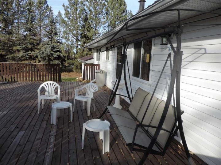 Fantastic location, only five nimutes from Rimbey. Rimbey is a great place for fun, commerce, religion and people. There are clubs, activities, a hospital. schools and so much more. The property is 2.99 acres, treed, a garden space, and fences off area for a few animals. This 1144 sq. ft. Bi-level has six bedreem, two four piece bath and a two piece ensuite. The kitchen was just upgraded three years ago to the tdune of $40,000.00. The bedrooms are of a comfortable size. Off the kitchen eating area is a doorway to the large deck with seating built in and a view of the west yard. The trees welcome all types of birds throught the year! Wild life like, White Deer, Red Fox make a visit from time to time. There is a shop for all the toys you may want to enjoy. The houe of heating se is heat efficient with boiler heating. With this type there is heat from corner to corner, not cold spots and very economical. In the hot summer you have air conditioning. The family room sports a wet bar, fire place and large windows making it bright and enjoyable to be there! To round things out, an over size double attached garage gives room for vehicles and mini shop. Great place to call home and have the family enjoy county life at is best!