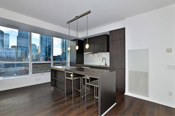 Welcome to Verve in East Village, one of Calgary’s most sought-after addresses combining modern design, urban energy, and incredible views. This 2-bedroom, 1-bath home offers 180° panoramic views of downtown and the Confluence Historic Site, where the Bow and Elbow Rivers meet. Floor-to-ceiling windows fill the space with natural light, and the open-concept layout connects the kitchen, dining, and living areas seamlessly, making it perfect for both relaxing and entertaining. The modern kitchen features sleek cabinetry, quartz countertops, and built-in appliances, while the home also includes central A/C, in-suite laundry, and a private balcony to take in sunrise and sunset views over the city. Adding even more value, this rare unit comes with two titled underground parking stalls plus three titled motorcycle stalls. Verve offers premium amenities including a rooftop lounge and terrace, fitness center, guest suites, and concierge service, all just steps from the RiverWalk, Central Library, cafes, and the CTrain. It’s downtown living with a riverside vibe — and a truly unique opportunity to own one of the most distinctive homes in the building.
