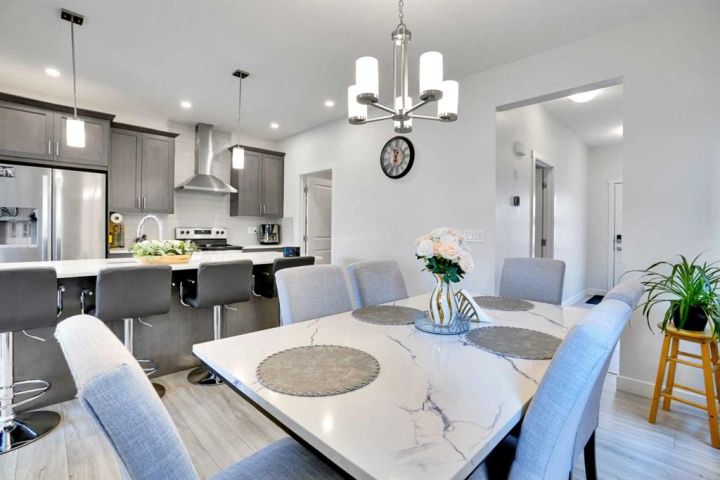 Welcome to this stunning three-bedroom semi-duplex with front attached garage in the sought-after Bayview community! This east-facing gem perfectly blends modern style with everyday comfort. The main floor boasts a bright, open-concept living area, enhanced by large windows that fill the space with natural light completed with a kitchen and pantry, 2 pc bath, dining and foyer space. A sleek electric decorative fireplace adds warmth and elegance, creating the perfect spot to unwind. The contemporary kitchen features quartz countertops, ample cabinetry, stainless steel appliances, and a convenient breakfast bar. There is a gas pipeline connection for those who want to upgrade their cooking prowess. Upstairs, a versatile loft area offers endless possibilities—home office, playroom, or entertainment zone. The primary suite is a relaxing retreat with a walk-in closet and an ensuite bathroom showcasing ceiling-height shower tiles. Two additional spacious bedrooms share a well-appointed full bath. Step outside to enjoy your spacious yard, perfect for gardening or outdoor activities. As a Bayview resident, you’ll have access to the renowned Bayview Park, featuring a tranquil water stream, outdoor tennis and basketball courts, and an open-air gym—ideal for an active lifestyle. Close to parks, schools, shopping, and major amenities, this home offers the perfect balance of style, comfort, and location. Don’t miss this opportunity—schedule your showing today!
