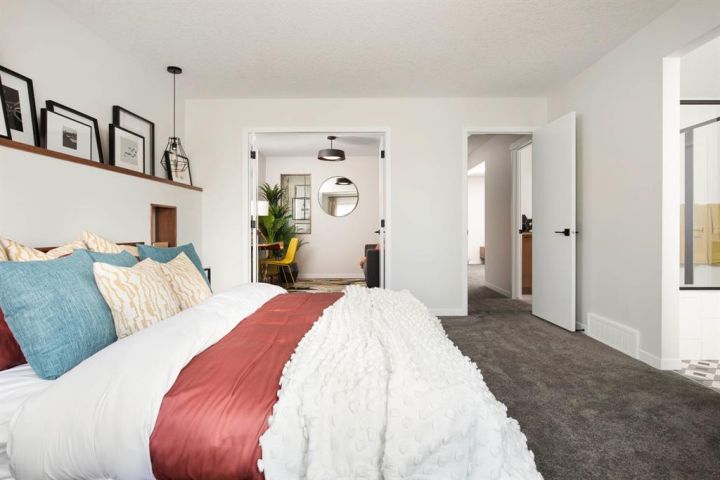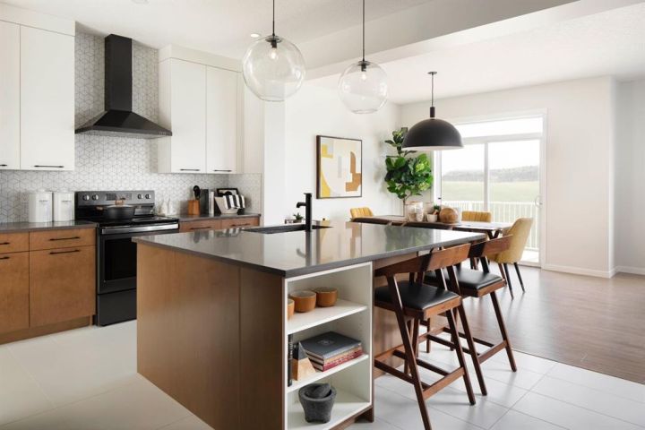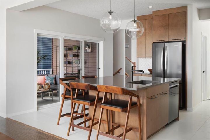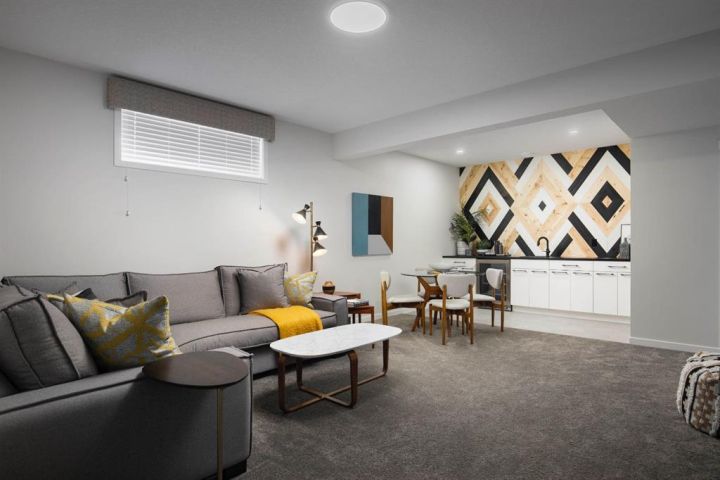 Welcome to this stunning former showhome in the desirable community of Sirocco at Pine Creek. This beautifully appointed 2,500 sq. ft. two-storey sits on a traditional lot and features a 22’x22’ front-attached garage. Step inside to discover mid-century modern inspired design blended with warm, contemporary finishes. The open-concept main floor showcases rich wood cabinetry, sleek black stainless appliances, and a large central island perfect for entertaining. Adjacent to the kitchen, the dining area and living space offer seamless flow and style, highlighted by designer lighting, geometric tile accents, and custom millwork. Enjoy cozy evenings in the covered side courtyard, complete with a two-sided fireplace that can be appreciated from both indoors and out — a rare and inviting feature. Upstairs, you’ll find three spacious bedrooms, including a luxurious primary suite with a 5-piece ensuite featuring glass accents, stylish tilework, and dual sinks. The primary also includes a flex lifestyle room — ideal as a nursery, home office, or personal gym. A central bonus room with loft, oversized laundry room with sink, and extra storage closet add to the home’s functional appeal. The fully finished basement extends your living space with a large recreation area, a wet bar with fridge and abundant storage, a cozy alcove for reading or hobbies, a 4th bedroom, and a full 4-piece bath. Additional upgrades include Gemstone lighting, air conditioning, and a blend of cork, tile, and carpet flooring throughout. This remarkable home combines craftsmanship, comfort, and timeless design — ready to impress even the most discerning buyers.