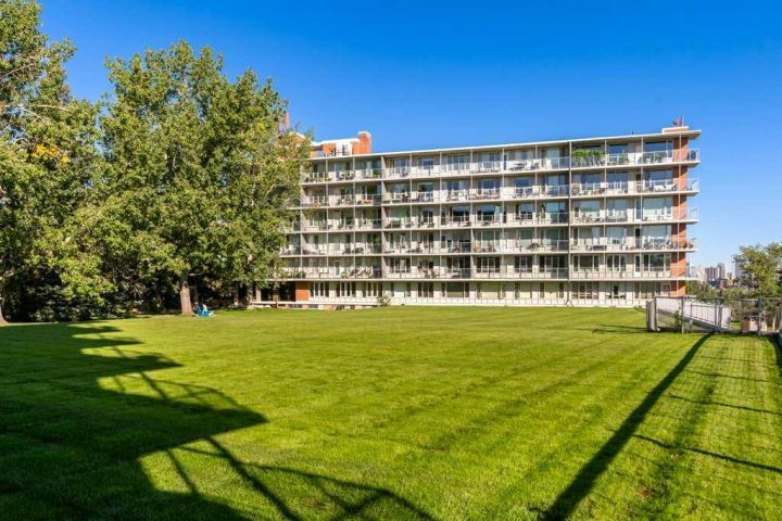 **OPEN HOUSE: SUNDAY NOV 2 | 2:00-4:00PM** Penthouse Living with Unmatched Views | Welcome to Unit 708 in Renfrew House—a rare penthouse offering perched high above Calgary in the prestigious Rideau Park community. This top-floor, 2-bedroom, 1-bathroom residence offers the perfect balance of timeless elegance, everyday functionality, and untapped potential for luxurious customization. Step inside to a sprawling open-concept living and dining area, bathed in natural light. The space invites both relaxation and entertainment, with seamless access to your private, full-length balcony showcasing uninterrupted panoramic views of the downtown skyline, the river valley, and even the distant Rocky Mountains—a front-row seat to Calgary’s most spectacular sunsets. The galley-style kitchen is fully functional as-is, yet holds limitless potential. Open it up to create a gourmet showpiece—ideal for hosting gatherings, late-night conversations, or quiet mornings with a view. The primary bedroom easily accommodates king-sized furnishings and offers tranquil retreat-like comfort. The second bedroom is a versatile space—perfect as a guest room, home office, or creative studio, complete with breathtaking sightlines that make even work-from-home days feel luxurious. Additional features include secure underground heated parking, a generously sized storage unit, and access to a well-managed, impeccably maintained building with serene green surroundings and a resort-like outdoor pool just steps away. Located mere minutes from Mission, 4th Street dining, the Elbow River pathways, and downtown Calgary, this penthouse marries the quiet elegance of Rideau Park with the pulse of urban living.