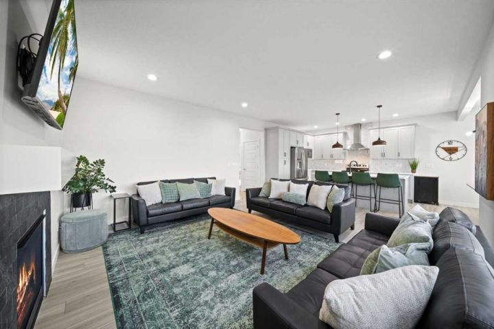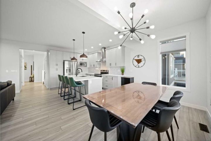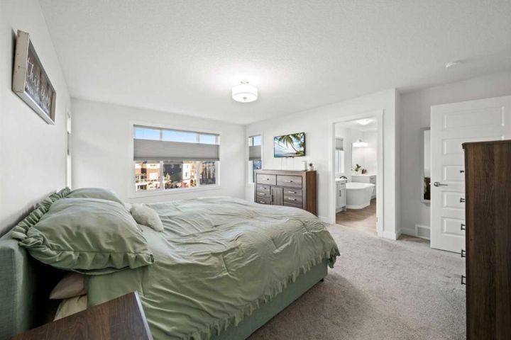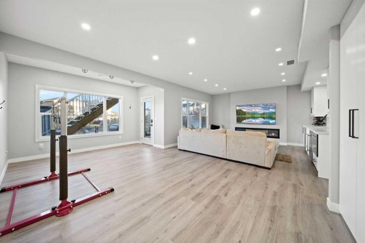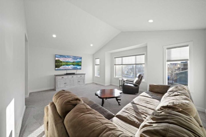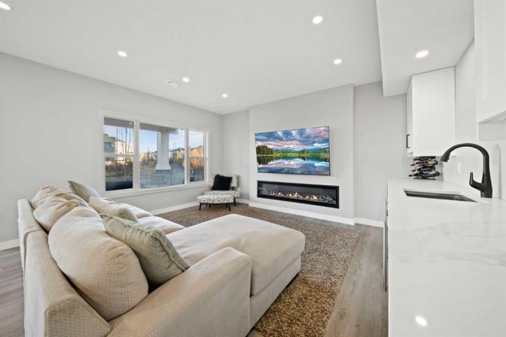 Welcome to this IMPECCABLY MAINTAINED FIVE BEDROOM FAMILY HOME perfectly positioned on a SPECTACULAR CANAL LOT in the sought-after community of BAYVIEW. (**CLICK on 3D ICON and MOVIE REEL ICON ABOVE FOR VIRTUAL TOURS**) OVER 3400 developed square feet backing directly onto the water with only one neighbour and a walking path on the other side, this property offers both privacy and year-round recreation — enjoy canoeing and paddle boarding in summer, and a true winter wonderland of skating and pond hockey when the canal freezes over. The MAIN FLOOR features an open-concept design with LUXURY VINYL PLANK FLOORING, large bright windows that flood the home with natural light, and a modern kitchen with gas rough-in for a future range. UPSTARS, you’ll find FOUR SPACIOUS BEDROOMS PLUS A VAULTED BONUS ROOM, and a luxurious FIVE PIECE ENSUITE with a standalone deep soaking tub and glass shower. The FULLY FINISHED WALKOUT BASEMENT 9 FOOT CEILINGS, an electric fireplace, custom built-ins, and a stylish wet bar complete with quartz countertops, microwave, and two beverage refrigerators—perfect for entertaining. A FIFTH BEDROOM and stunning bathroom with floor-to-ceiling tiled shower complete the lower level. Outside, enjoy an UPPER DECK WITH SWEEPING CANAL VIEWS with sweeping canal views and a COVERED PATIO BELOW, ideal for morning coffee or evening relaxation. The HEATED GARAGE (brand-new gas heater) and LARGE BACKYARD SHED add practicality and storage. Walking distance to Nose Creek Elementary (K–5) and within the boundaries for C.W. Perry Middle School. THIS HOME COMBINES COMFORT, FUNCTION, AND LIFESTYLE IN ONE REMARKABLE PACKAGE!