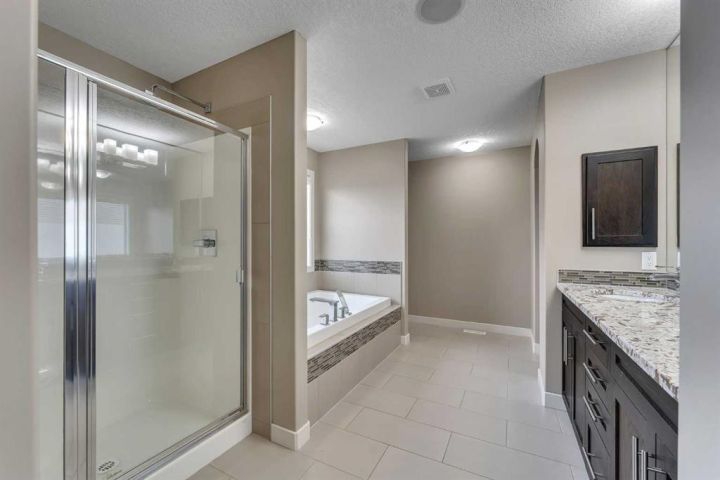 **LEGAL BASEMENT SUITE** Welcome to this stunning two-storey home in the heart of Cochrane’s highly sought-after community of Sunset Ridge. Offering 3336 sqft of total living space, this AIR-CONDITIONED corner-lot property perfectly blends modern luxury with everyday comfort — complete with mountain views, a brand-new legal suite, and countless upgrades throughout. 5096 SQFT CORNER LOT SIZE! Step inside and be greeted by a bright, open foyer with soaring 9 ft ceilings and a warm, welcoming atmosphere. The main floor features durable tile flooring throughout, ideal for families and easy maintenance. The luxury kitchen is a chef’s dream, showcasing rich granite countertops, a large island, tons of cabinetry, and a massive walk-in pantry for all your storage needs. Entertain in style in the great room, complete with a cozy gas fireplace, or host summer gatherings on your oversized, full-length deck while enjoying the mountain views. A main floor den, laundry area, and spacious mudroom add convenience and function to this exceptional layout. Upstairs, you’ll find plush high-end carpet installed in 2023 and a thoughtfully designed upper level featuring a luxurious primary suite with a spa-inspired 5-piece ensuite — complete with a deep soaker tub, double sinks, and a separate shower. The walk-in closet provides ample space for your wardrobe. Two additional generous bedrooms, each with their own walk-in closets, offer plenty of room for children, guests, or home offices. This home comes fully equipped with modern amenities, including a smart home entertainment system, built-in speakers throughout (and on the deck), an irrigation system, and elegant Hunter Douglas blinds in every room. Above the garage, you’ll find a soundproof entertainment room, ideal for movie nights, gaming, or music — a perfect retreat for the entire family. The showstopper is the brand-new legal basement suite (built in 2024), featuring a private side entrance, two spacious bedrooms, large bright windows, and contemporary finishes throughout. SEPARATE WASHER/DRYER. This space is ideal for extended family, guests, or as a mortgage helper generating rental income. Freshly painted from top to bottom, this home feels brand new and move-in ready. Located on a corner lot with beautiful curb appeal, you’ll appreciate the extra yard space and open feel. The double attached garage provides plenty of parking and storage. Set within the family-friendly community of Sunset Ridge, this home offers everything you need within minutes — schools, parks, playgrounds, walking trails, and local shops and restaurants. Enjoy the perfect balance of small-town charm and city convenience, with easy access to downtown Cochrane and a short drive to the Rocky Mountains for weekend adventures. This incredible home truly has it all — space, luxury, and unbeatable versatility. Whether you’re looking for a family home or an investment property, you won’t find a better value in Sunset Ridge.