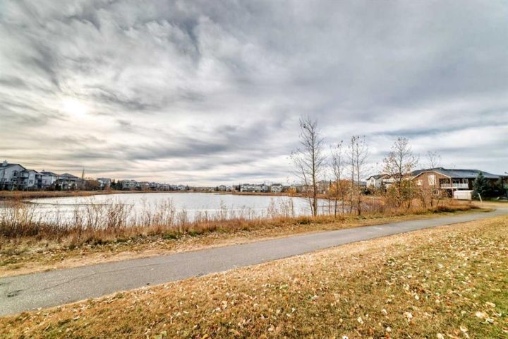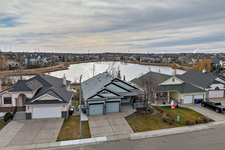LUXURY LIVING ON THE POND. Experience the exquisite, entirely new renovated luxury walkout bungalow backing onto West Creek Pond, with stunning views, turnkey and ready for its next owner! This is truly what dreams are made of, as you enjoy daily sunrises/sunsets and walks around the pond, accessible from your large, sunny, south-facing backyard—open-concept main floor with vaulted ceilings, abundant natural light throughout, and unobstructed views. This 3-bed, 3-bath, plus office/den bungalow features brand-new, beautiful custom cabinetry, luxury appliances, a waterfall-edge quartz countertop and backsplash, and a custom pot filler —truly a chef’s dream! Curb-less tiled ensuite shower with custom glass, quartz counters throughout, a wet bar on the lower level, and a brand-new upper patio deck, gorgeous custom-engineered white oak hardwood, with custom tile and carpet. Custom-designed throughout, fully developed walkout basement with walkway and pond access. Laundry is conveniently located on the main floor. The underground sprinkler system keeps the landscaped yard well-nourished throughout the summer. Perfect for those seeking a nature-inspired lifestyle, moments away from walking pathways, a golf course, a beach, a lake, shopping, schools, playgrounds, restaurants, roadways, and other major amenities. MUST VIEW! Book your private viewing today! *3D VIRTUAL TOUR AVAILABLE*