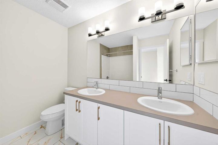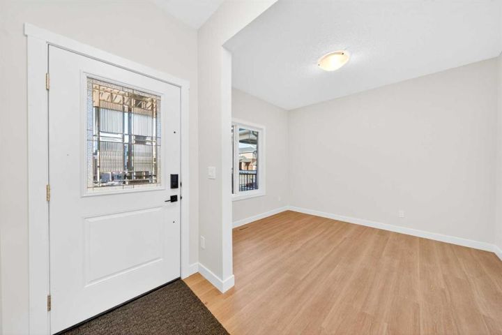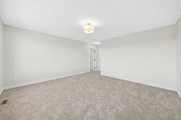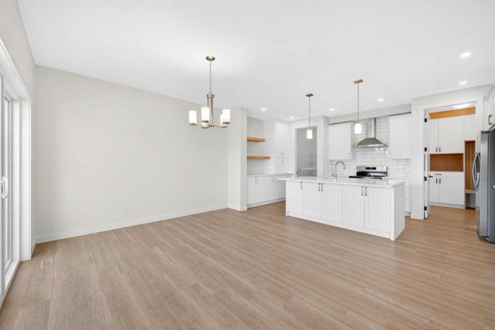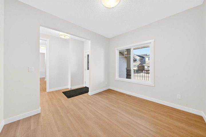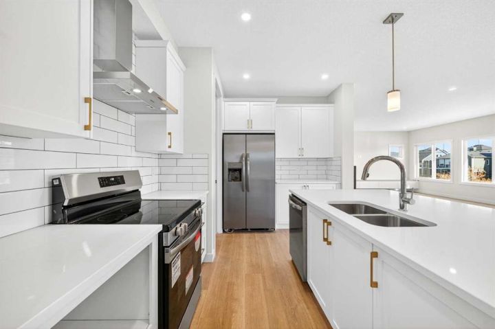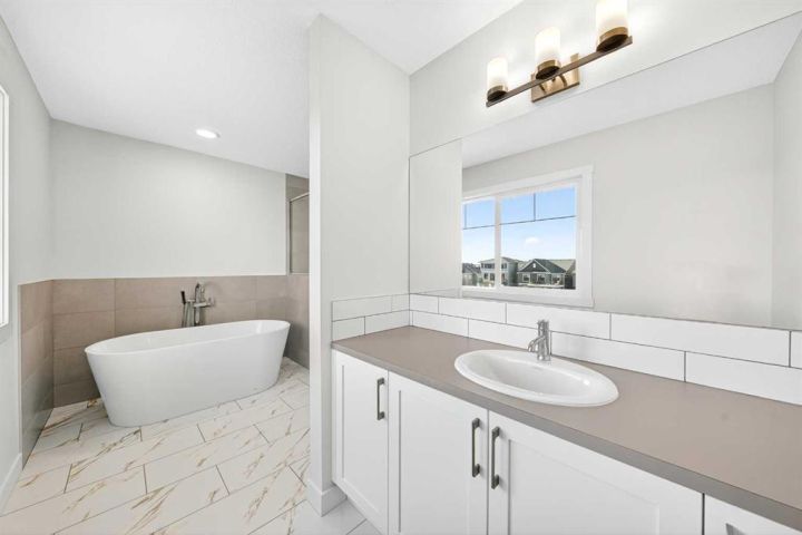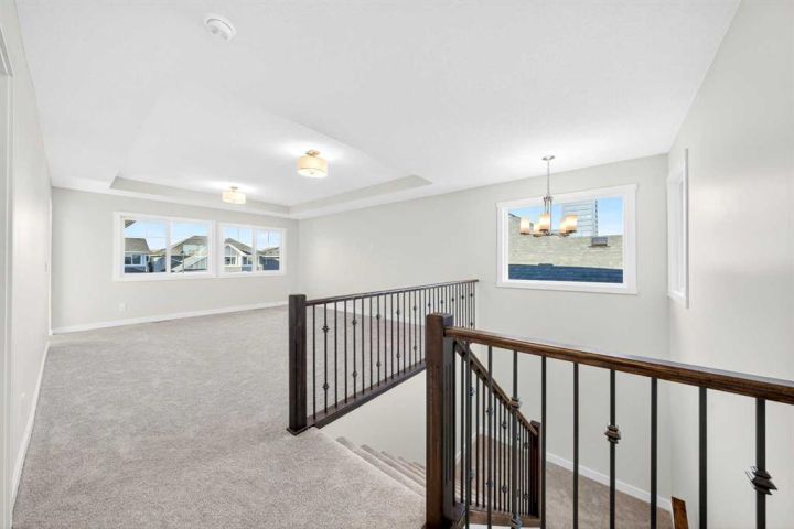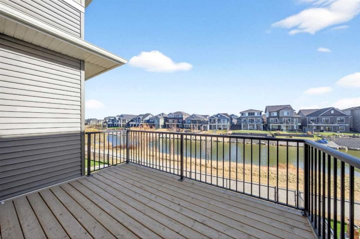 Welcome to this striking new-build family home by Genesis Home in the desirable Bayside community, offering 4 Bedrooms, a large Bonus Room, 2.5 Baths, 2,767 sq.ft. of thoughtful living space. Backing directly onto a walking path and the scenic canal, this residence invites a lifestyle of connection with nature and outdoor enjoyment. Step inside the inviting front porch to the main level with 9-ft ceilings and vinyl plank flooring throughout. To the left is a Den, ideal for home office or quiet retreat. The heart of the home unfolds with an East-facing open floor plan, where three large windows frame the walking path and canal, flooding the space with light. The well-appointed white Kitchen features a centre island, quartz countertops, ample cabinetry and extra storage, stainless steel appliances and a walk-through pantry. The large Living Room with built-in media station and the spacious Dining Area that are great for entertaining with friends and family. From the Dining Room via a 3-panel sliding patio door to a deck, complete with gas hookup and beautiful canal views. Imagine sitting out on the deck to enjoy your morning coffee with a nice view of the Canal to start your day. From the Kitchen and pantry you enter a well-designed Mudroom with built-in cabinets and bench, which leads to the double attached garage. A powder room rounds out the main level. On the upper level, you’ll find a large Bonus/Family Room, a spacious Primary Bedroom with canal-view window, and a spa-inspired 5-piece ensuite featuring a double vanity, freestanding soaking tub and large walk-in closet. Three additional Bedrooms, a 5pc Bath and a conveniently located Laundry Room complete this level. The walk-out basement is currently unfinished but includes a bathroom rough-in and dual furnaces—representing great potential for future development. Step outside to the East-facing backyard that backs directly onto the walking path and canal—with gated access to the path—creating a seamless indoor-outdoor connection and a true extension of the home’s living space. Enjoy the patio area with a second gas hookup, perfect for outdoor dining or a future fire table setup. Located in Bayside, this home offers you the best of family-friendly design and location. The community is known for its picturesque canals, scenic walking paths and abundant green space. With easy access to schools, shopping and transit, it offers both tranquility and convenience. A rare opportunity to own a brand-new family home with canal-side living, premium layout and an unbeatable setting.