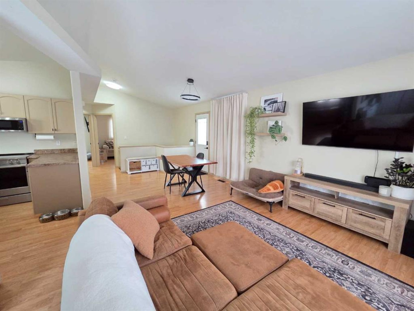 Located in Pinnacle Ridge, this beautifully maintained 882 sq ft bungalow shows exceptionally well and would make an ideal starter home or revenue property. The main floor features 2 bedrooms, 1 bathroom, an abundance of natural light, charming decorative arches, and a well-sized kitchen with maple cabinets overlooking the dining area. The fully developed basement offers a spacious family/rec room complete with a wet bar and pool table—perfect for entertaining. Outside, you’ll find a fully fenced and landscaped backyard with additional parking accessible from the alley. Conveniently located close to schools and parks, this home clearly reflects pride of ownership inside and out.